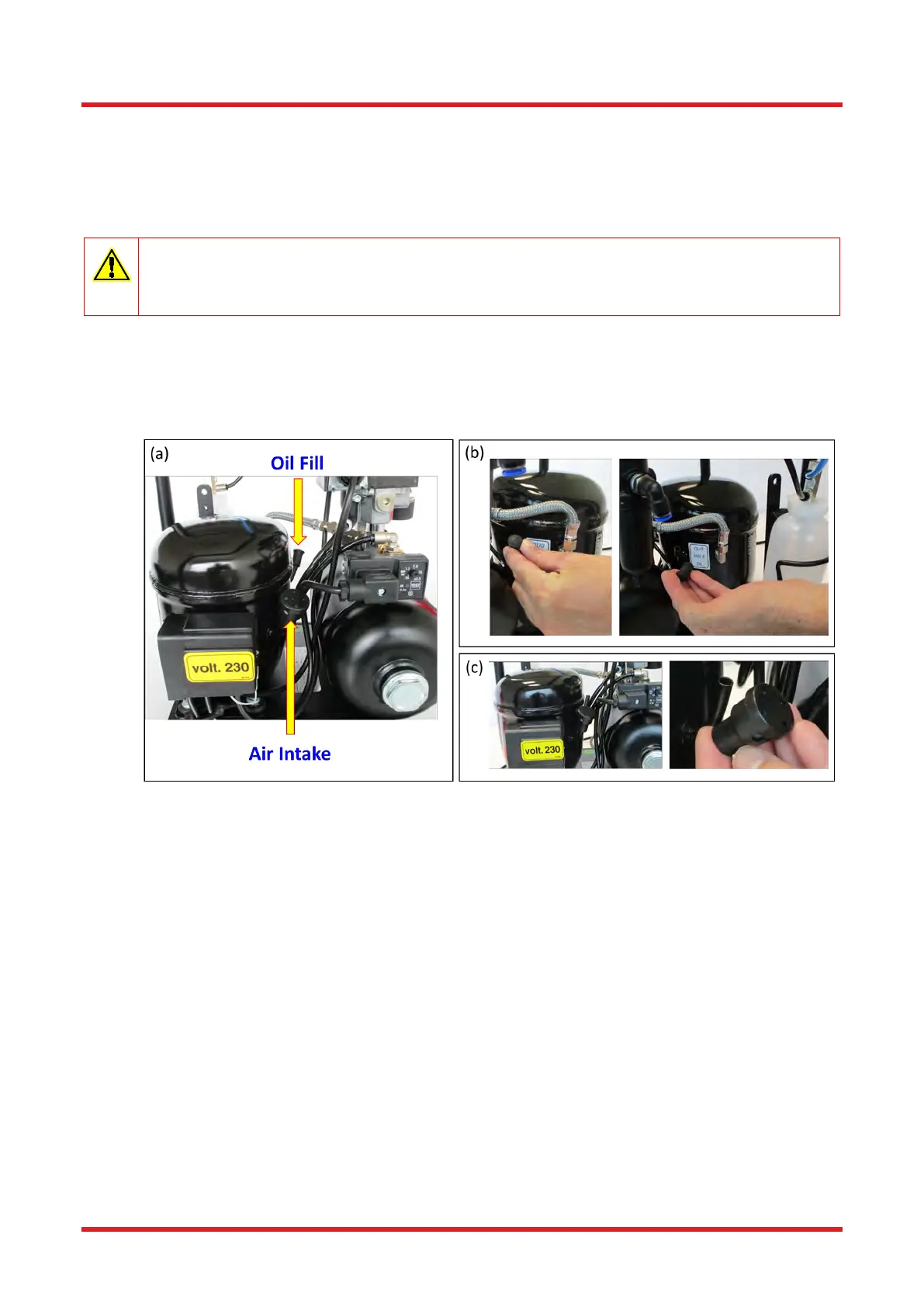 2. Remove the rubber transportation plug from the oil intake pipe (Figure 5b).