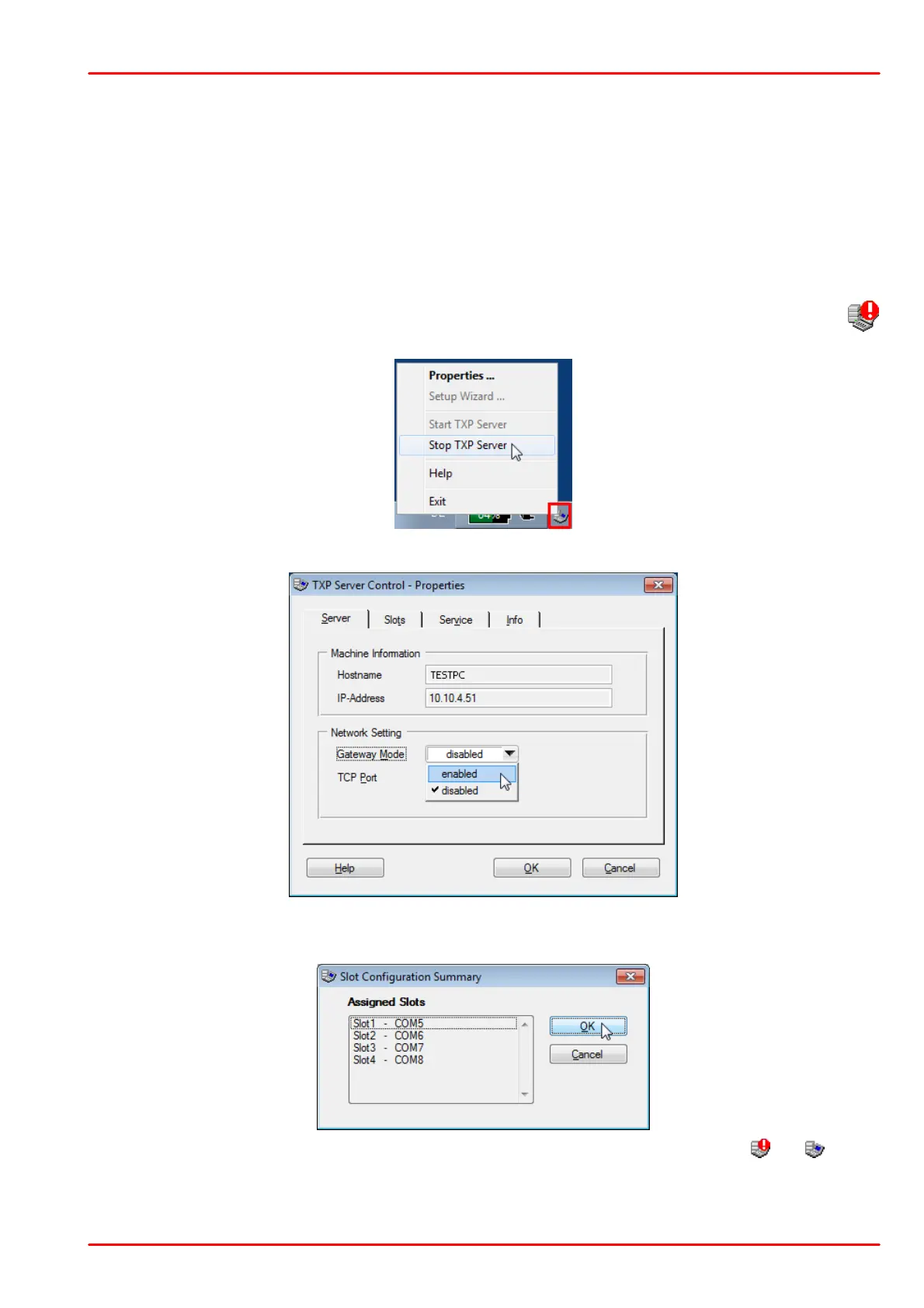 The gateway mode can be enabled only if the the TXP Server is stopped. The icon