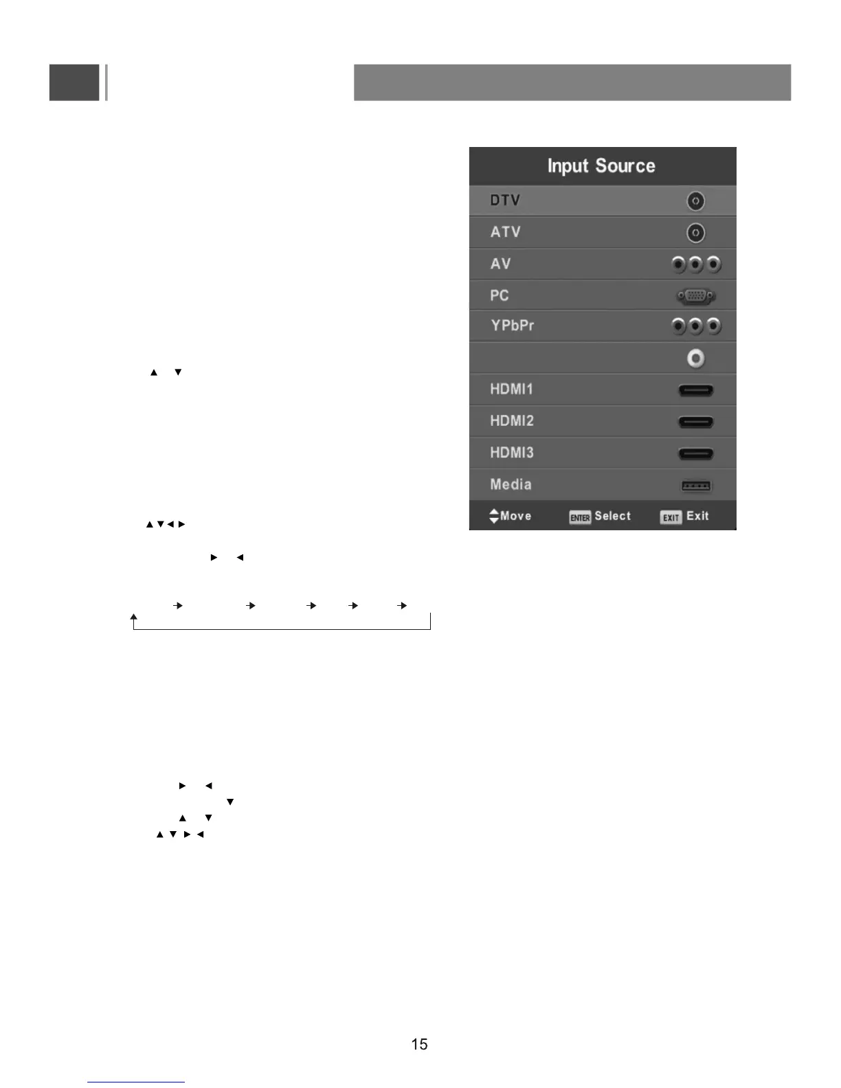 -Press the Input button to display the Input source