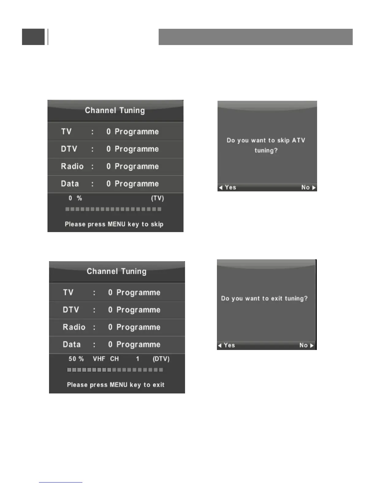 Second tuning digital, press Menu and left arrow button on the remote control to skip digital tuning.