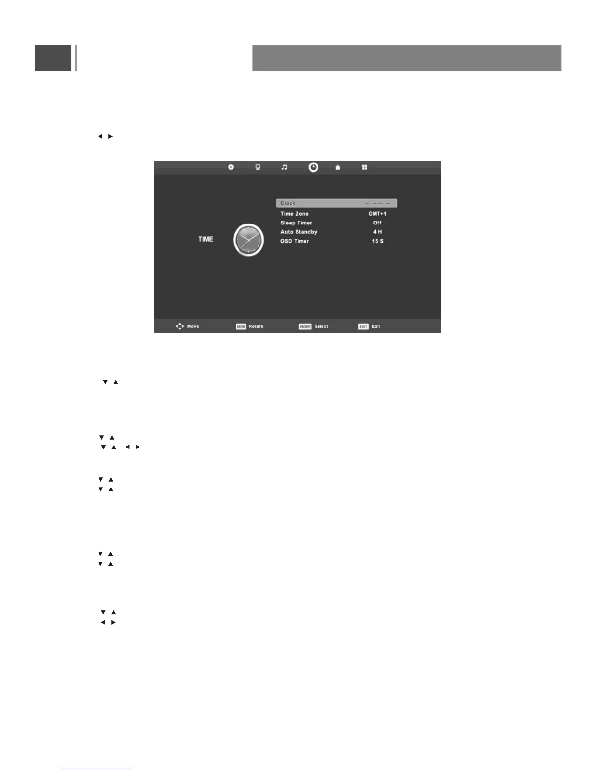 Press button on the remote control to select TIME in the main menu.