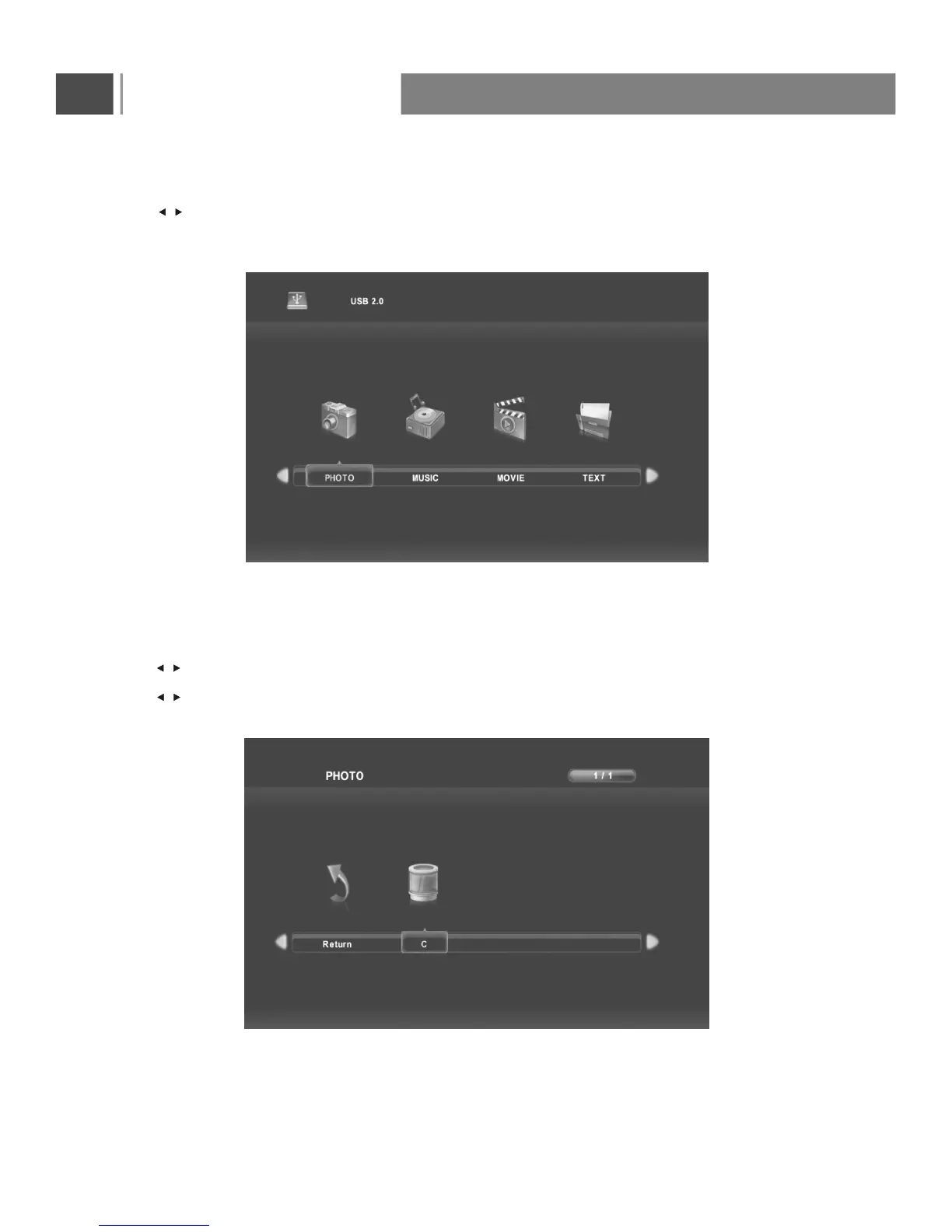 Press button to select PHOTO in the main menu, then press Enter button to enter.