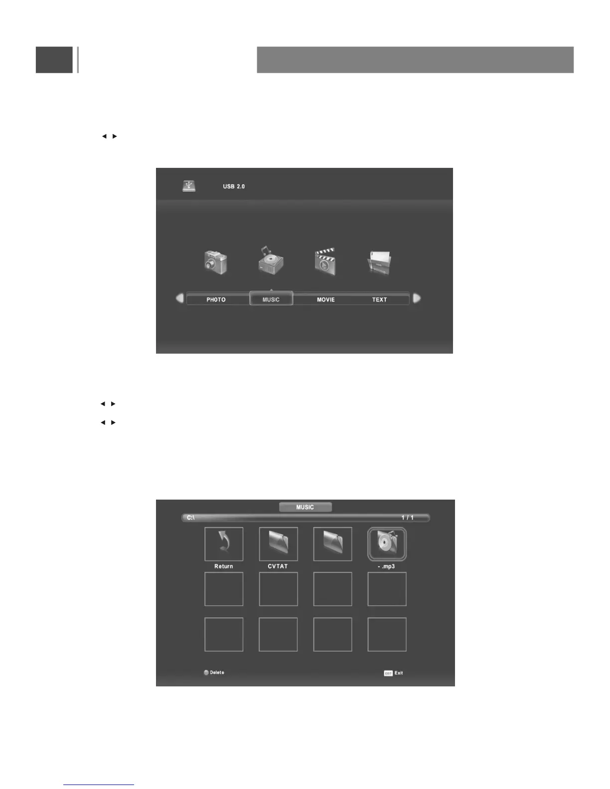 Press button to select MUSIC in the main menu, then press Enter button to enter.
