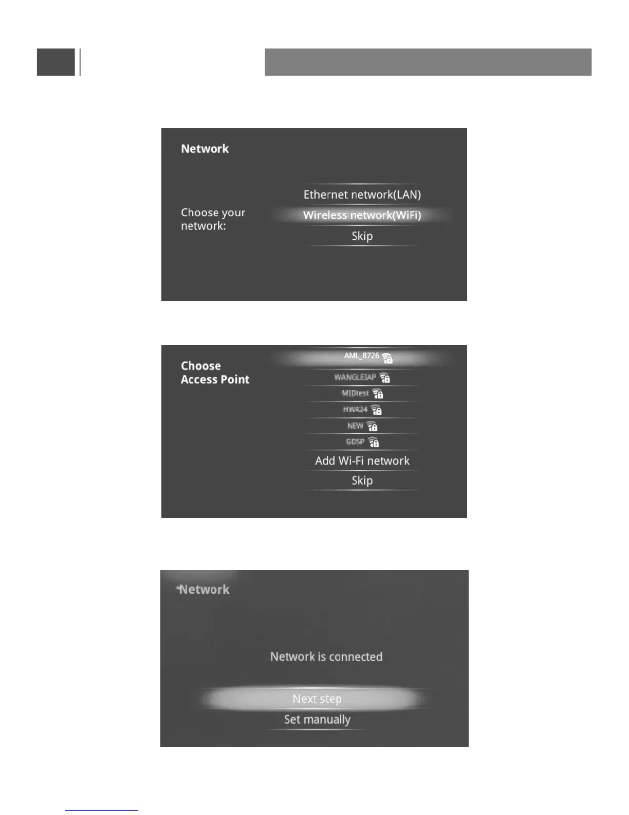 If .Ethernet., The screen will show Ethernet connection status: