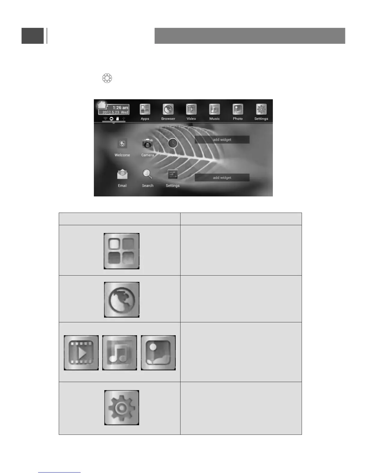Press the arrow buttons to select the icon and 'ENTER' the sub-screen: