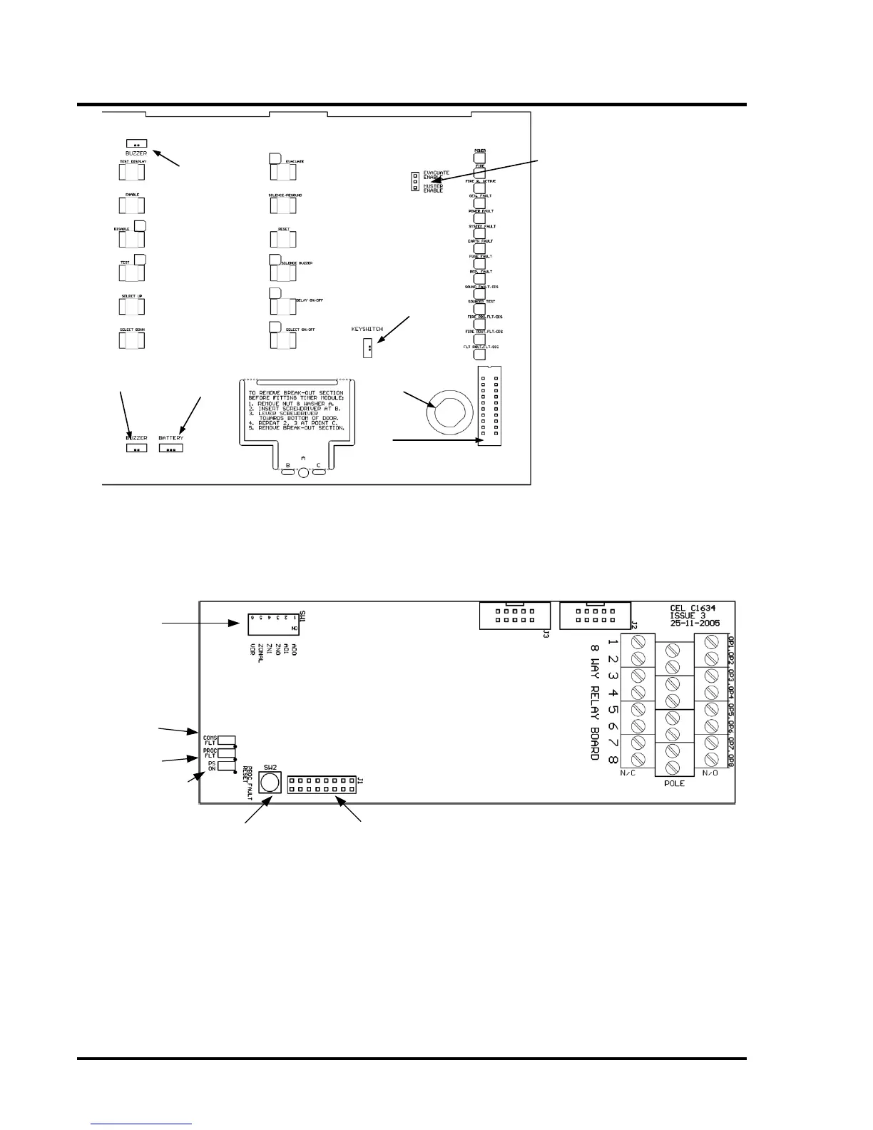 Thorn security TYCO T1216W-C - Rear Right Hand Side of Display PCB; C1634 Relay Output Module