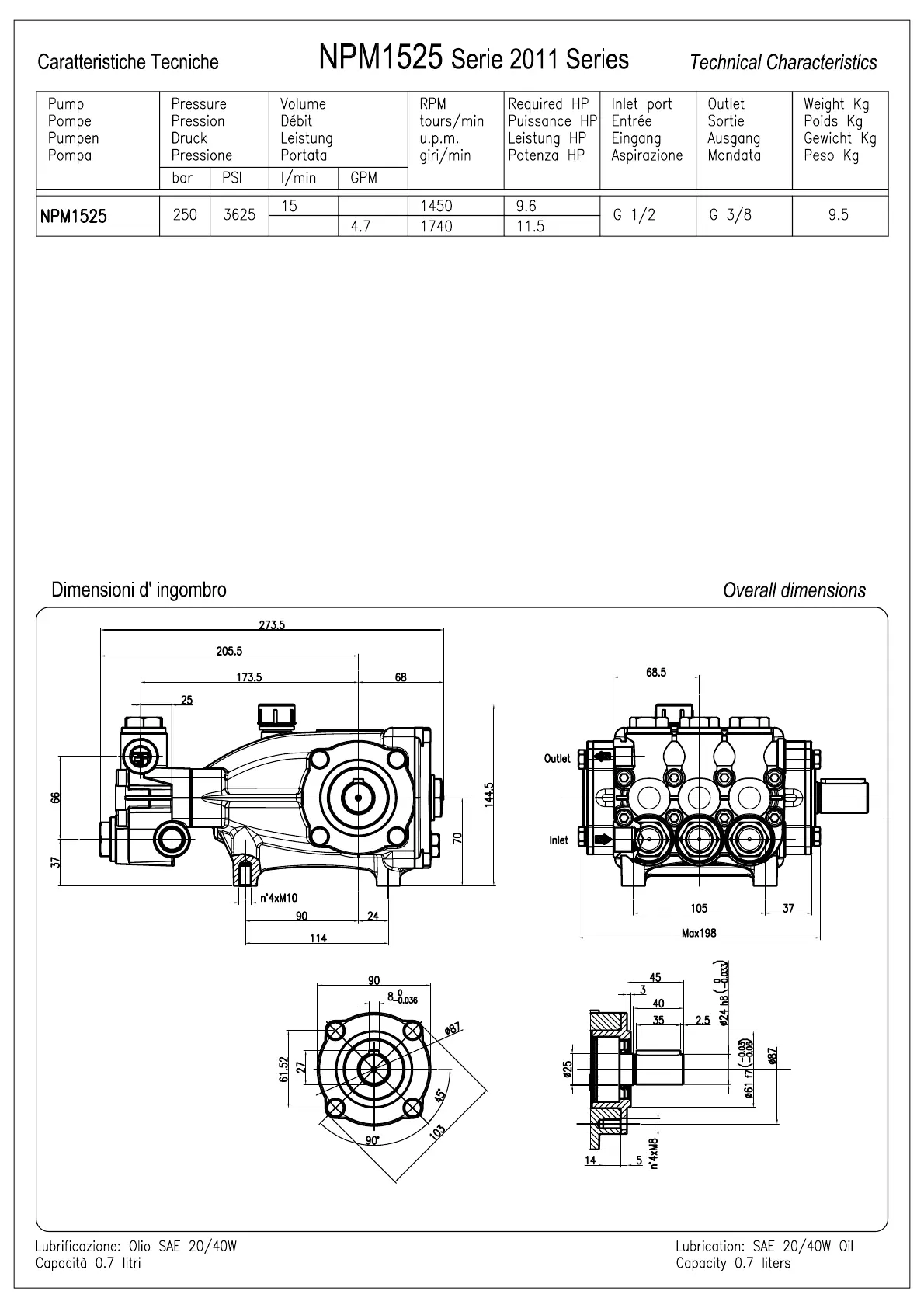 ThoroughClean D10M-36H - Technical Specifications; Pump Technical Data; Overall Dimensions