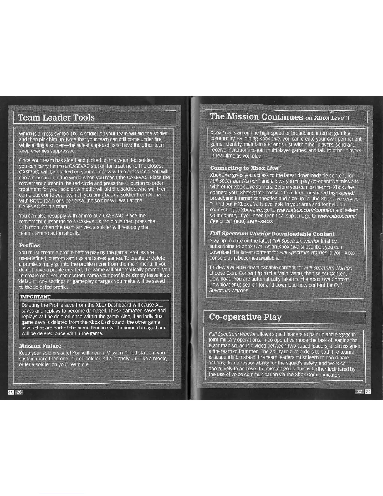 THQ FULL SPECTRUM-WARRIOR - Team Leader Tools; Mission Failure; The Mission Continues on Xbox Live!; Co-operative Play