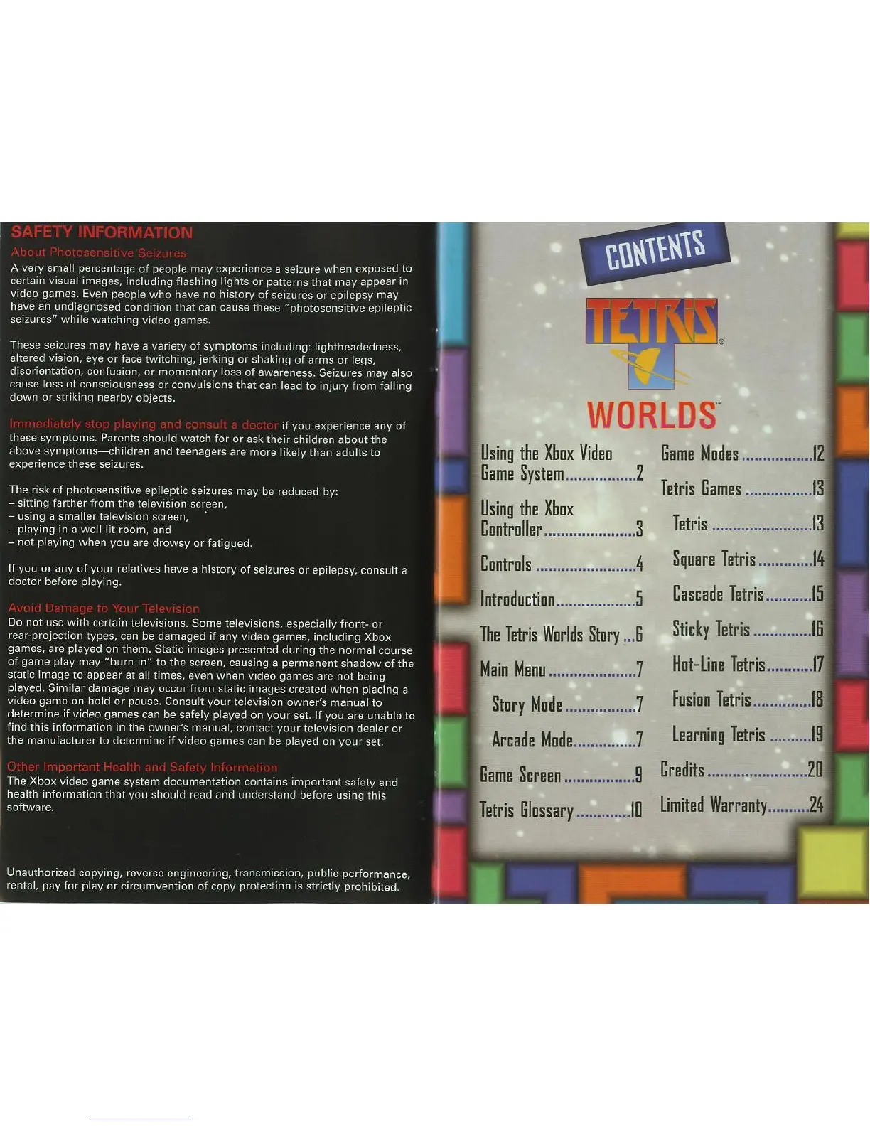 THQ TETRIS WORLDS - Safety Information; About Photosensitive Seizures; Avoid Damage to Your Television