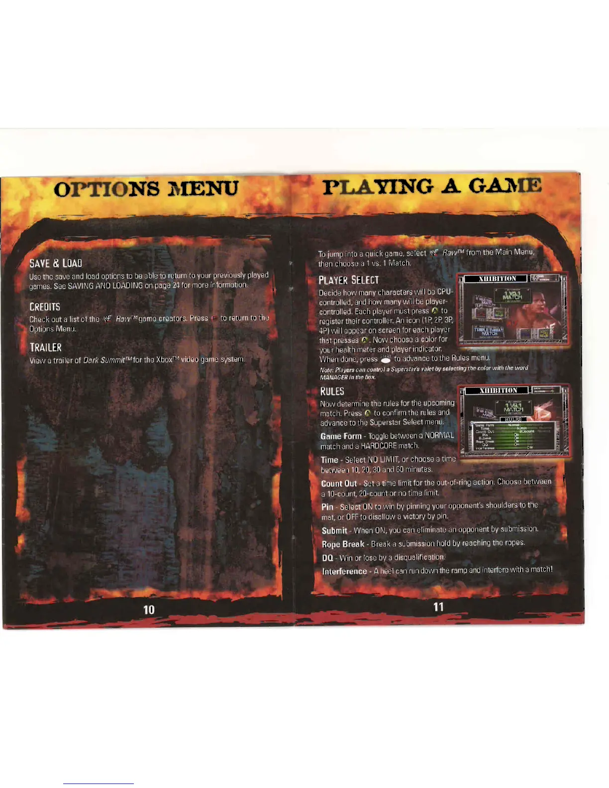 THQ WWF RAW - OPTIONS MENU - Progress; SAVE & LOAD; PLAYING A GAME - Setup; PLAYER SELECT