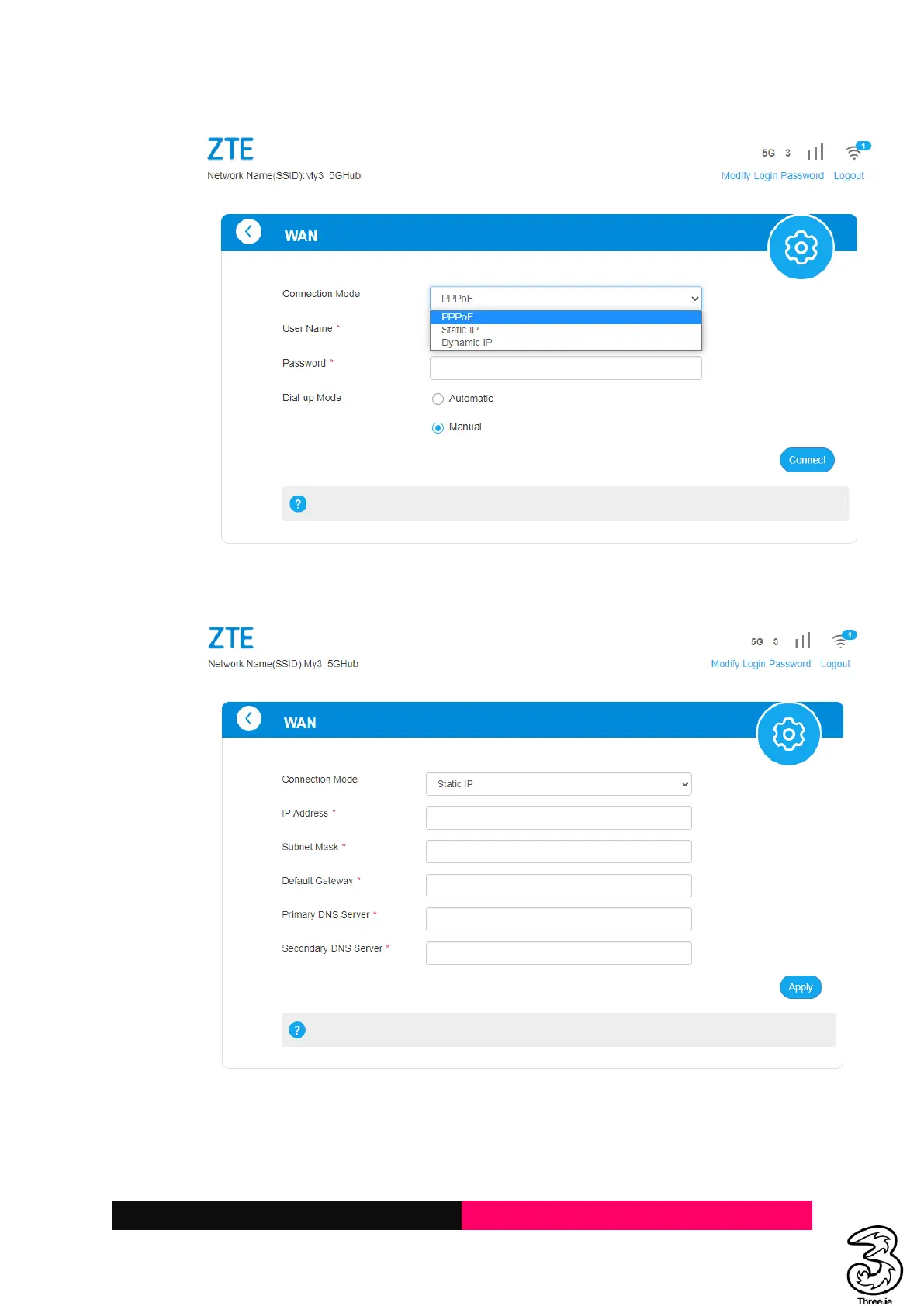 Three ZTE MC801A - Update Firmware