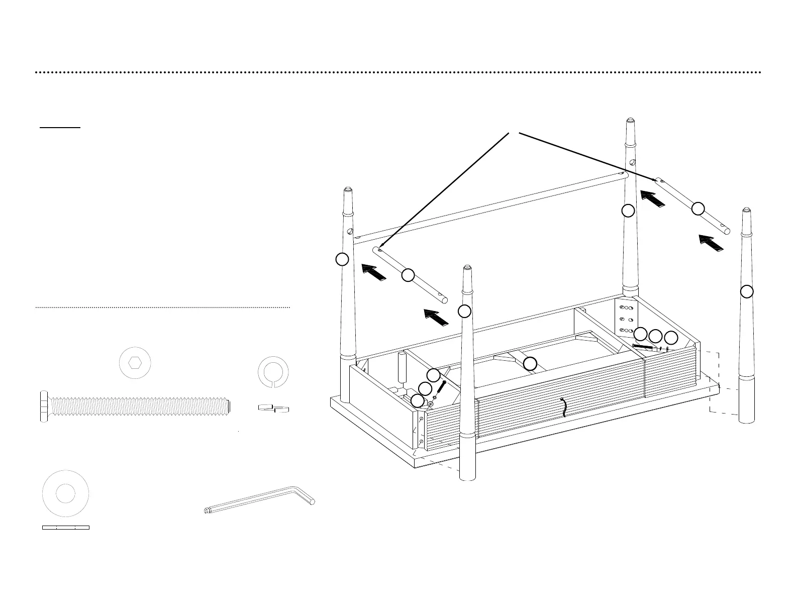 Attach the front legs (B and C) to the desk top (A) loosely and insert the side stretchers (G) between the legs properly.