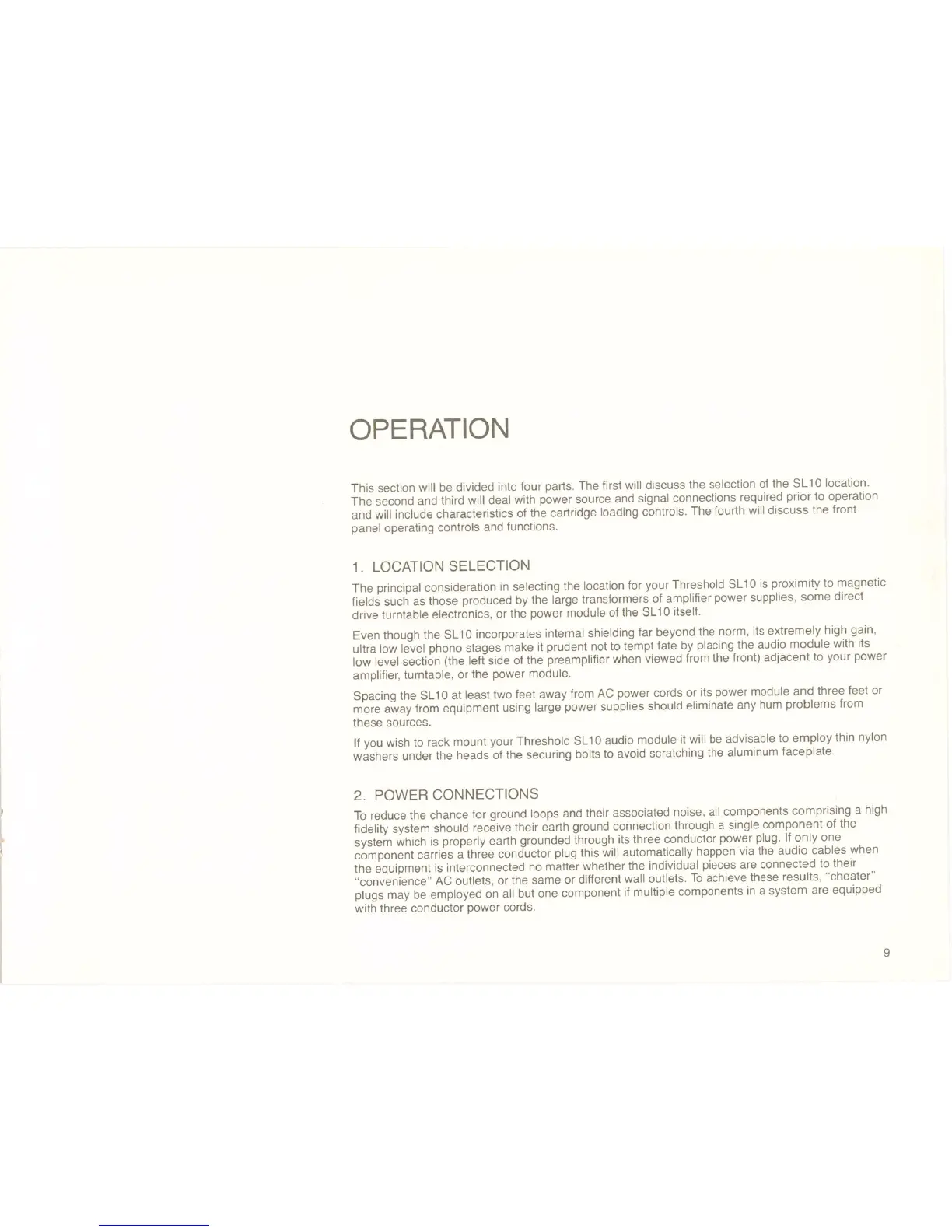 Threshold SL10 - Threshold SL10 Operation and Controls; SL10 Location Selection Advice; SL10 Power Connection Procedures