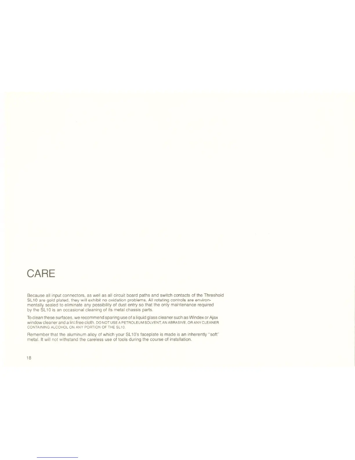Threshold SL10 - Threshold SL10 Care and Maintenance