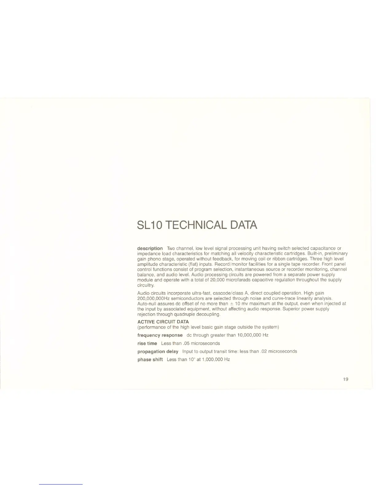 Threshold SL10 - Threshold SL10 Technical Specifications