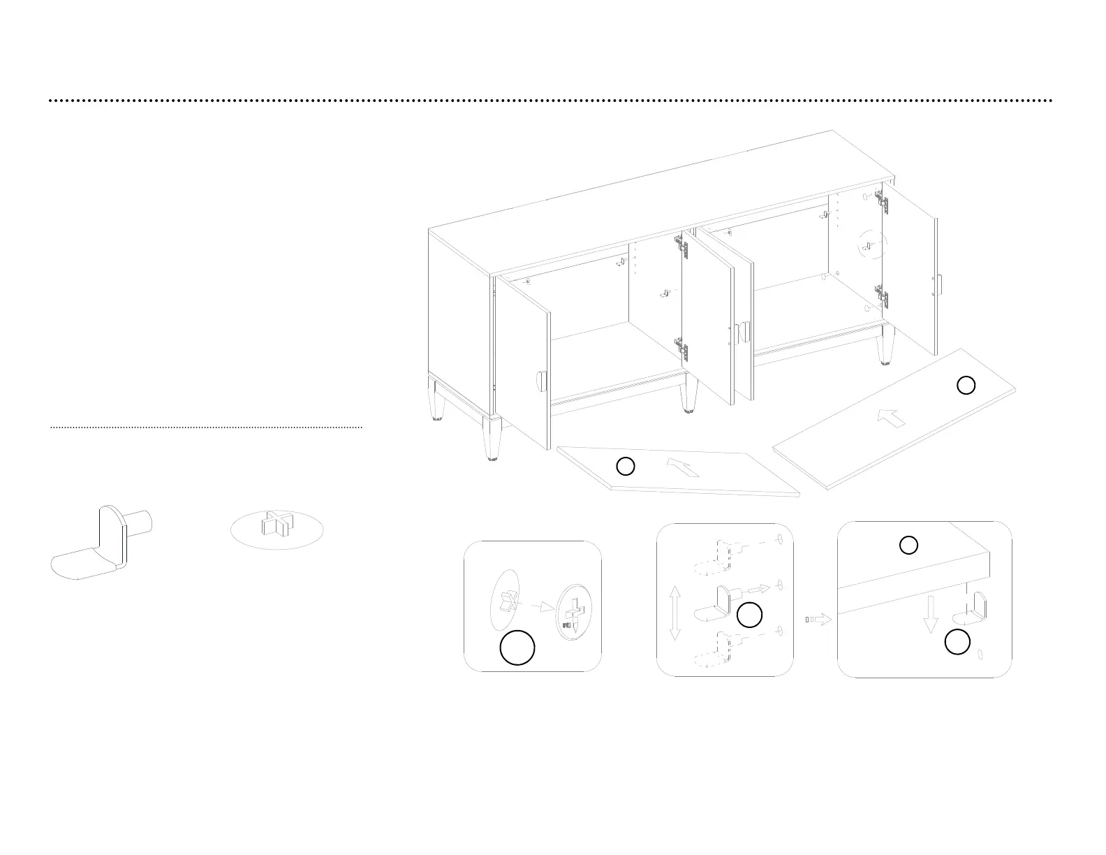 step 12: install the adjustable shelves and put cam lock covers