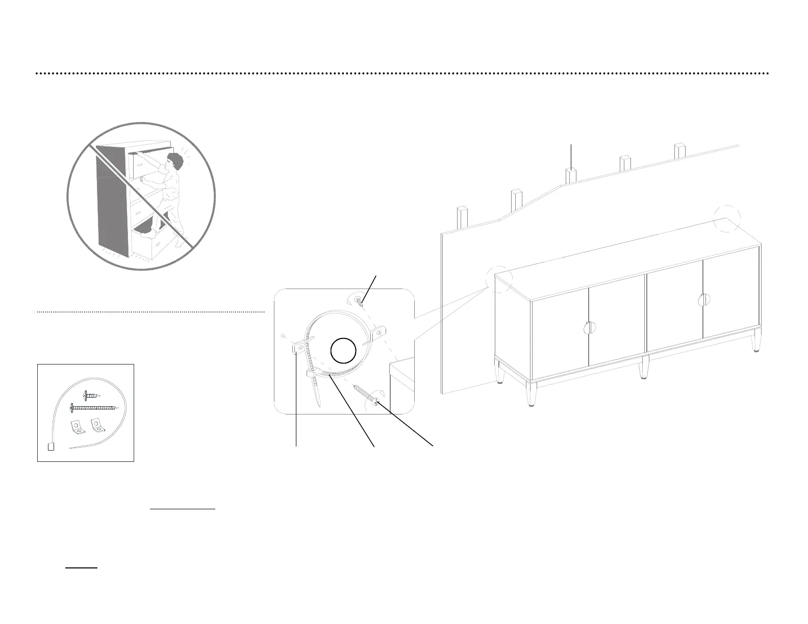 NOTE: You can share the back panel screw hole for the anti-tipping hardware. You must use this tipping restraint to attach this unit to the wall, to prevent
