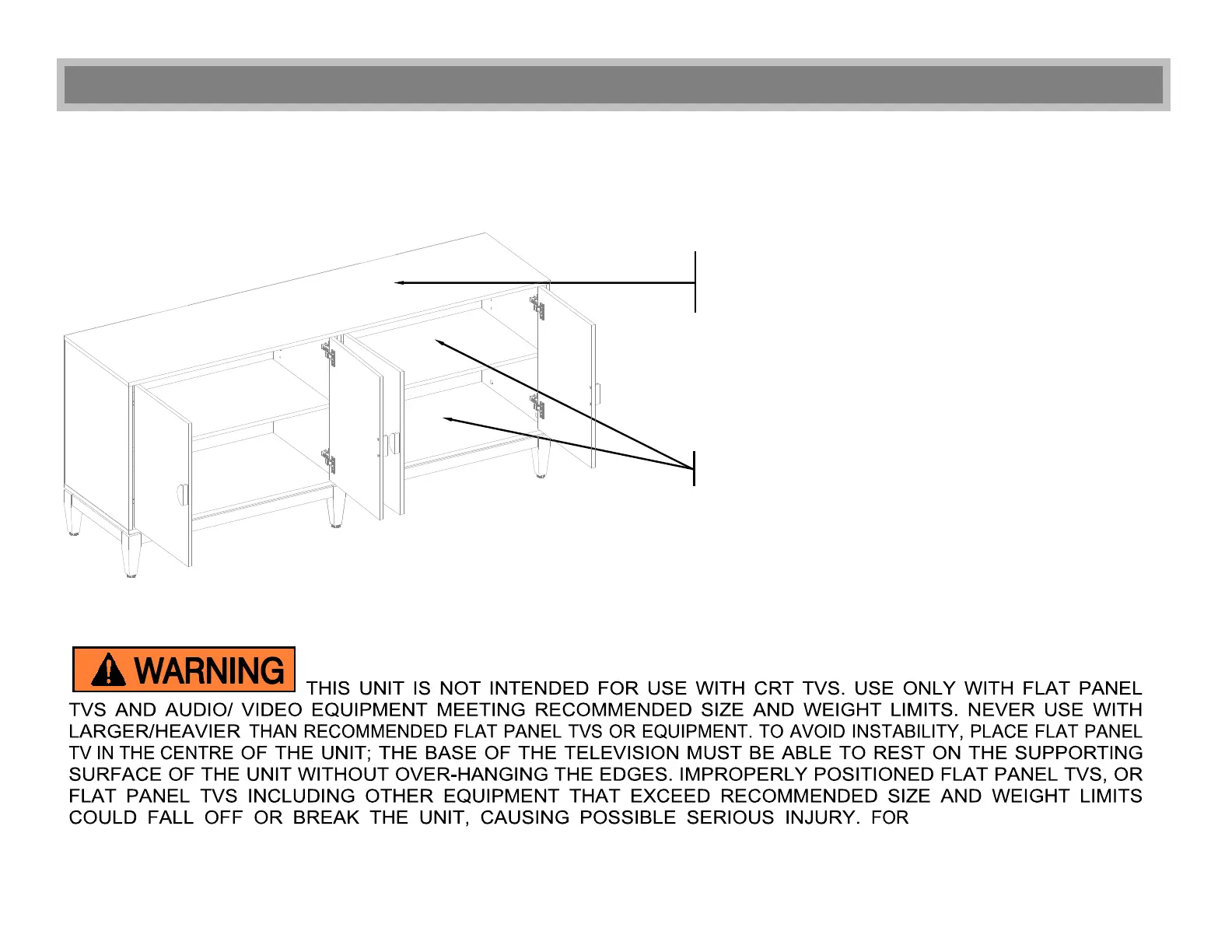 WEIGHING 90 LB (40.8 KG) OR LESS. USE WITH HEAVIER TELEVISIONS MAY RESULT IN INSTABILITY CAUSING TIP