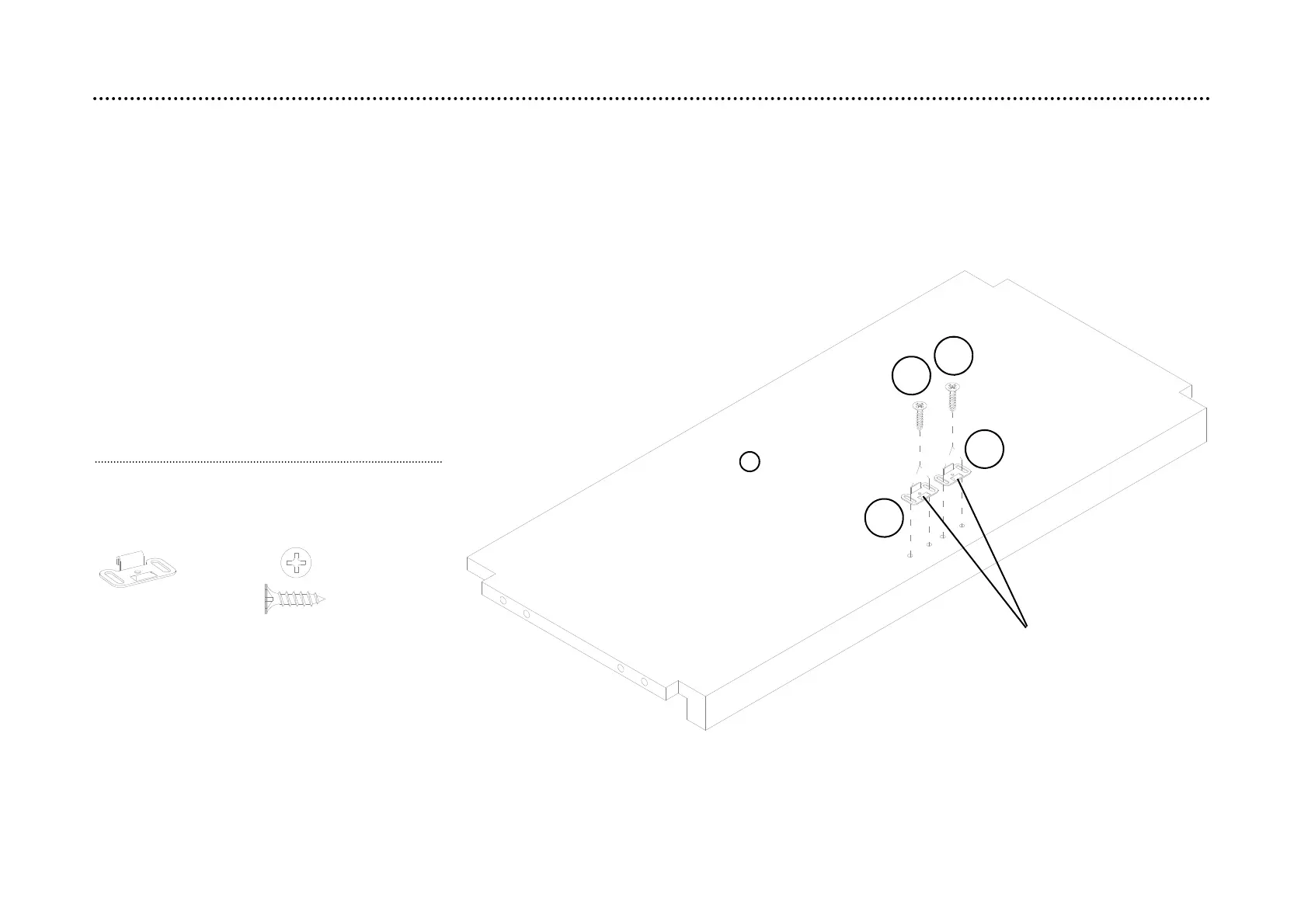 3.1. Using the pilot holes as a guide, Fasten two roller catch metal plates (H14) to the bottom panel (C) using two 12 mm screws (H16) in each.
