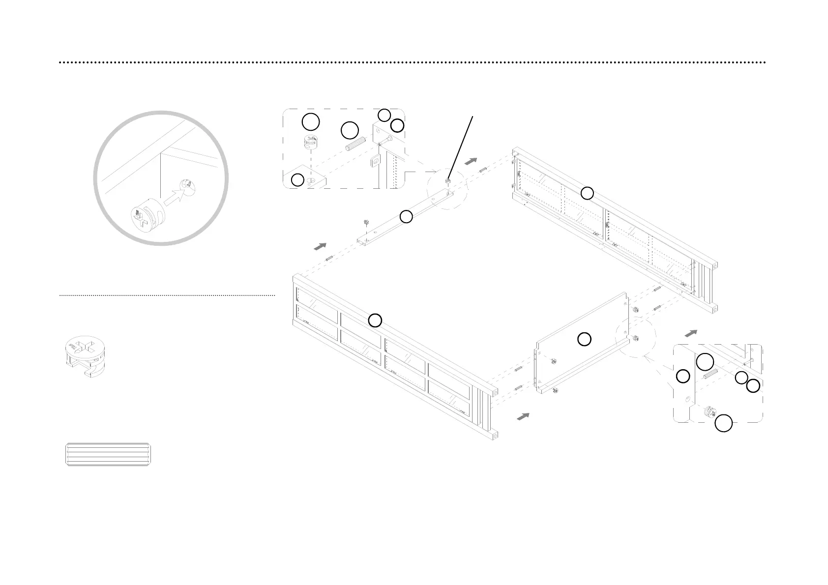 4.3. Repeat the same procedure to attach the left side frame (F) at the opposite end.