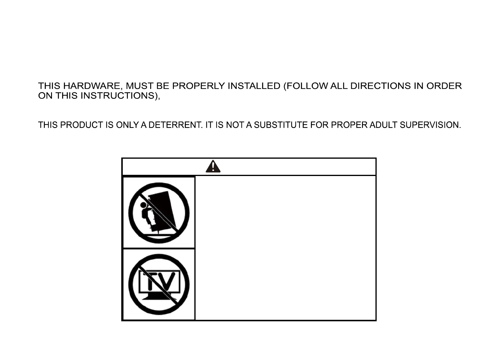 USE OF TIP-OVER RESTRAINTS MAY ONLY REDUCE, BUT NOT ELIMINATE, THE RISK OF TIP-OVER.