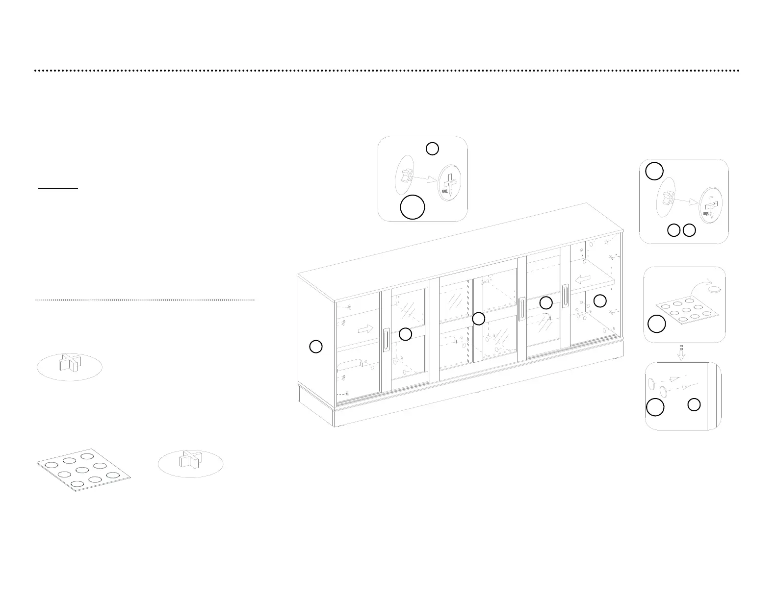 9.3. Using the pilot holes as a guide, affix the rubber bumpers (H6) onto each side panel (H) where the sliding doors are in contact with.