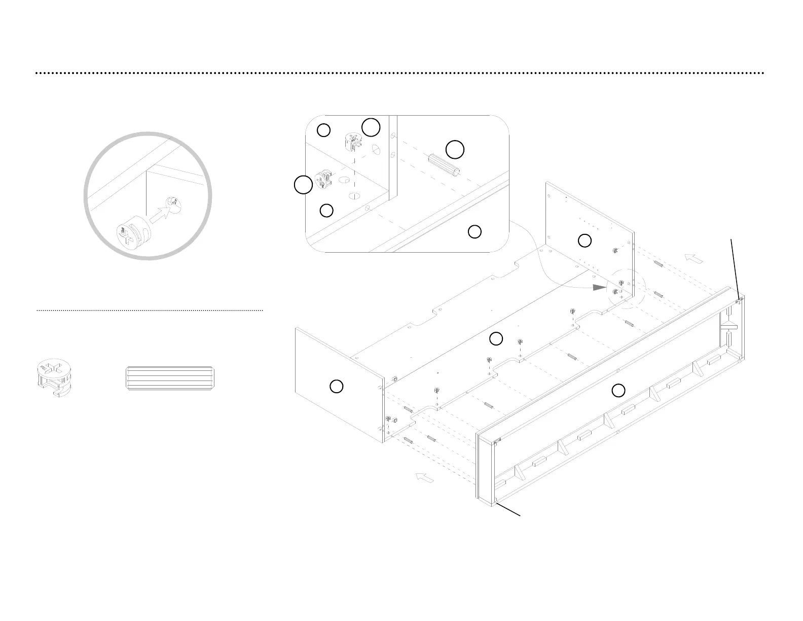 3.2. Align and attach both side panels (H) and back panel (G) to the base (C) with ten cam locks (H1).