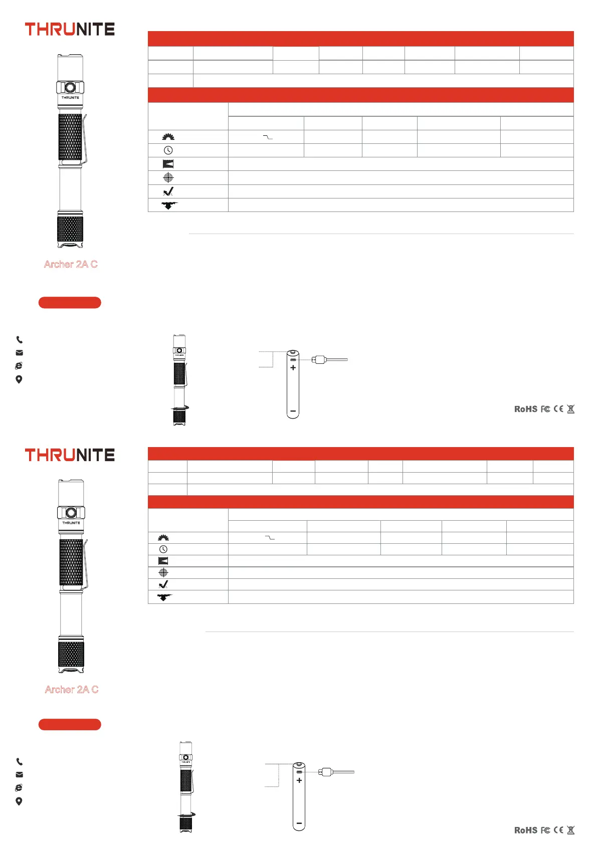 emerkung:Die oben genannten Parameter sind mit einer wiederaufladbare THRUNITE Akku 1600mAh getestet worden und dienen als Richtwerte. Sie können