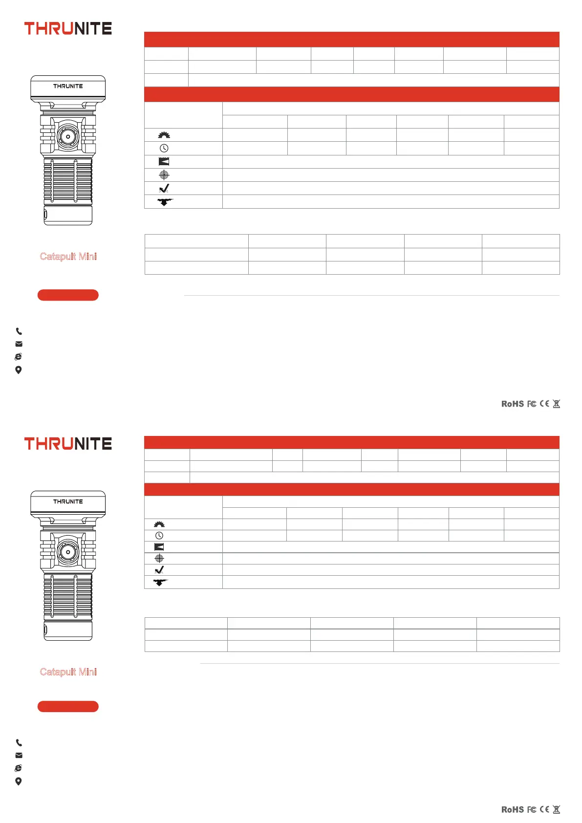 ※注: 上記の性能表記は THRUNITE 18350 1100mAh 充電池1本を使用した場合の目安値であり、使用電池や使用環境により数値は変動します。