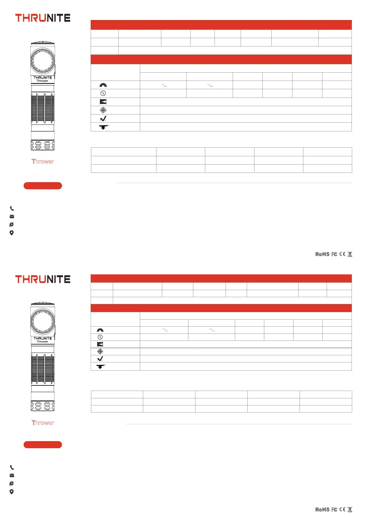 ※注: 1. 上記の性能表記はTHRUNITE 3400MAH 18650充電電池1本を使用した場合の目安値であり、使用電池や使用環境により数値は変動します。