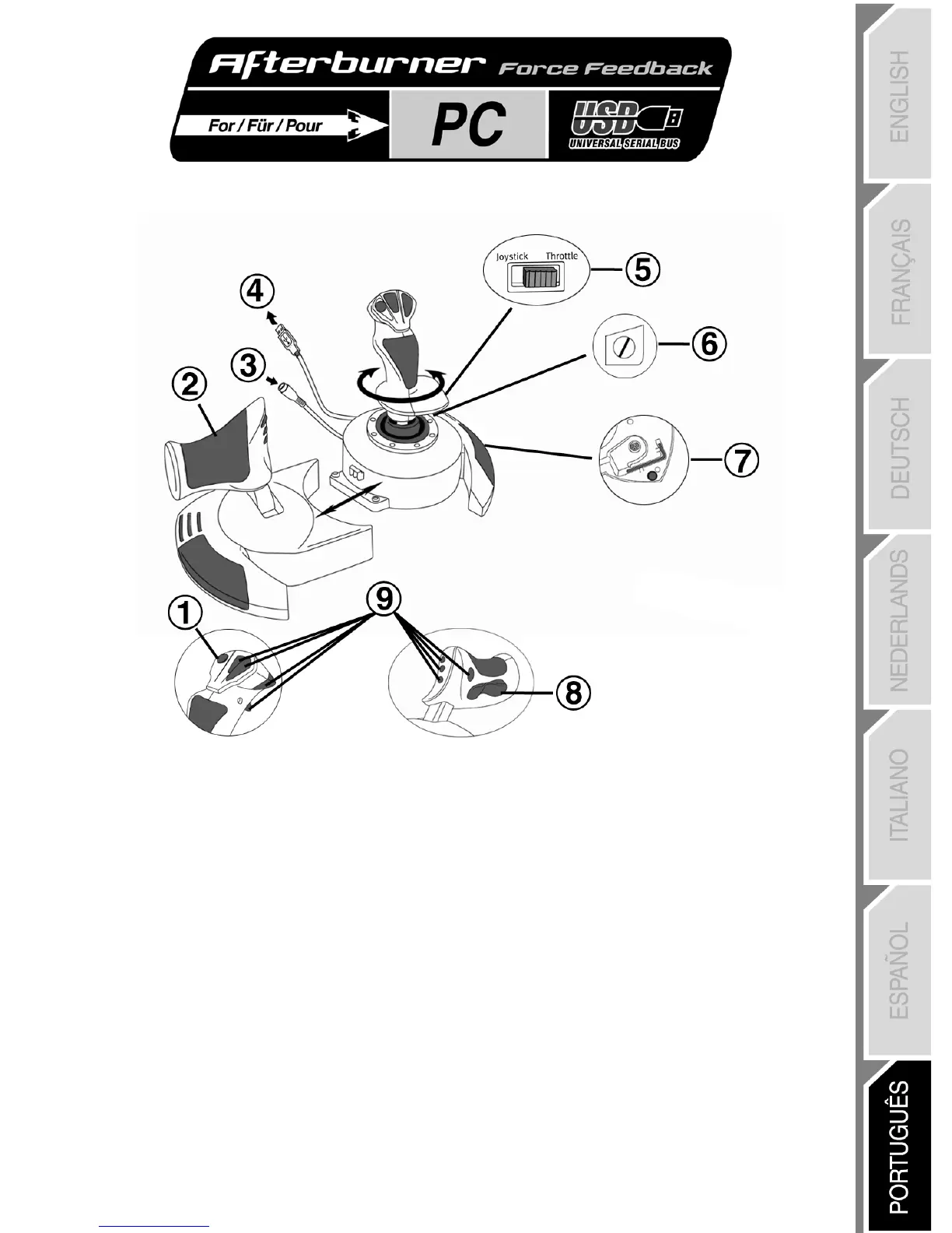 O CD-ROM incluído permite instalar os controladores dos efeitos de retorno de força do joystick.