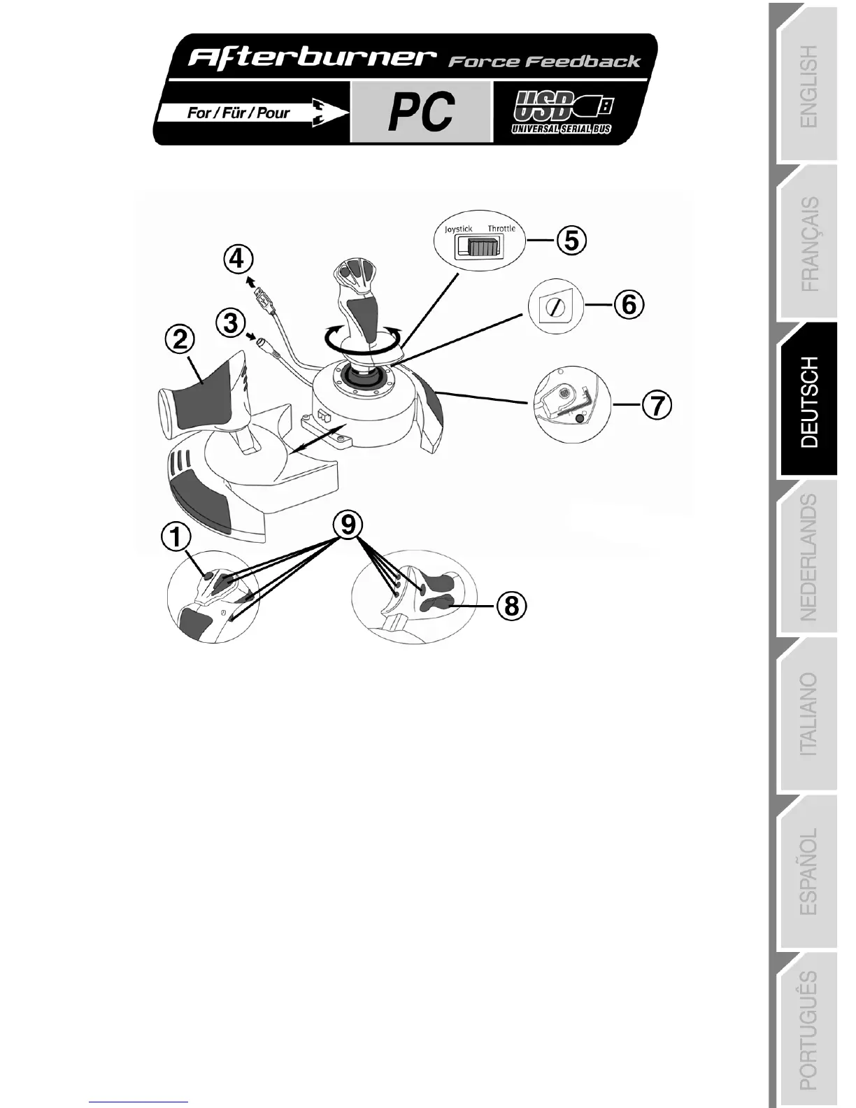 an. Stecken Sie den Stromstecker in die Stromverbindung (3) Ihres Joysticks.