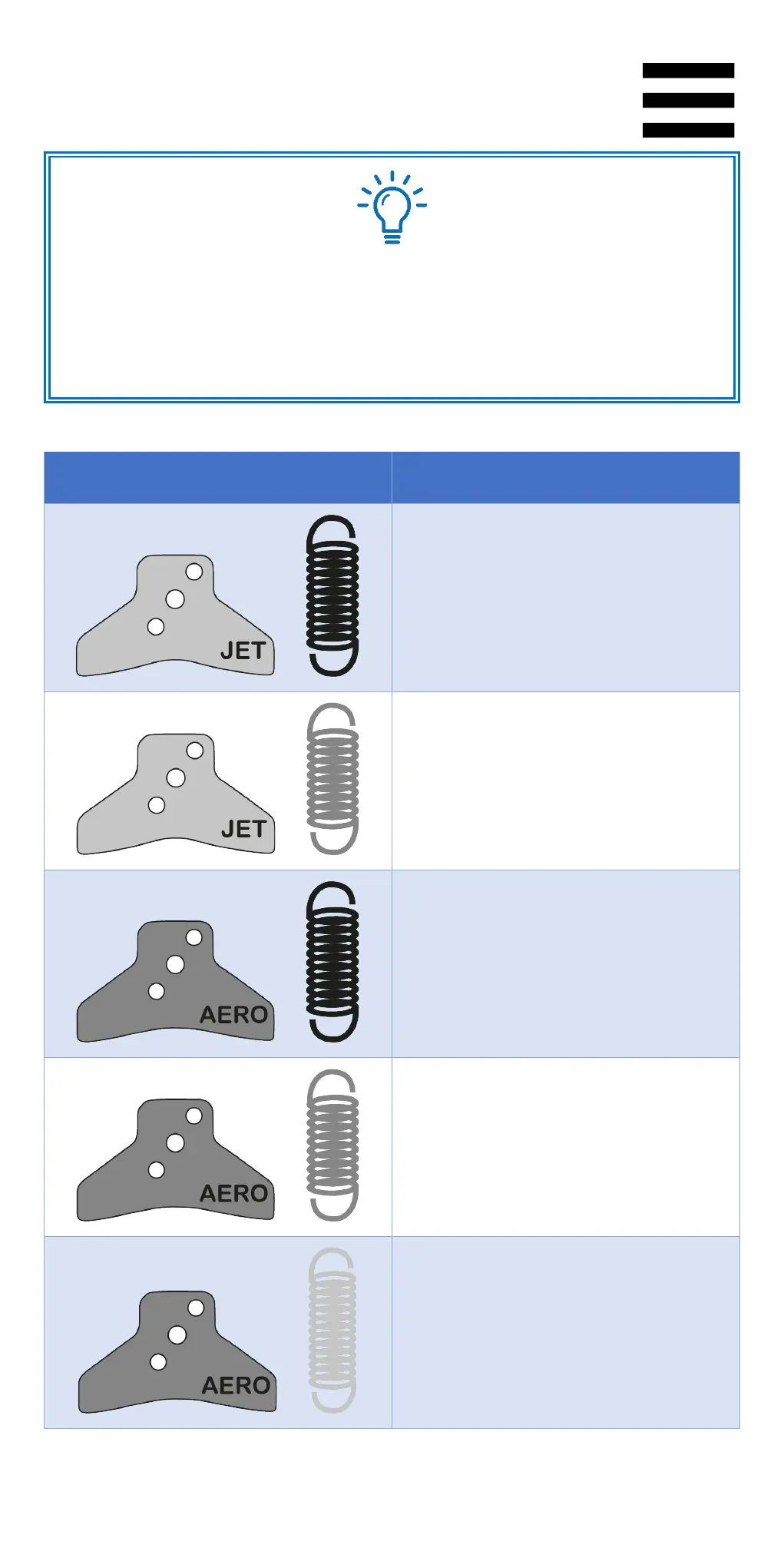 doporučujeme kombinace pružin a vače