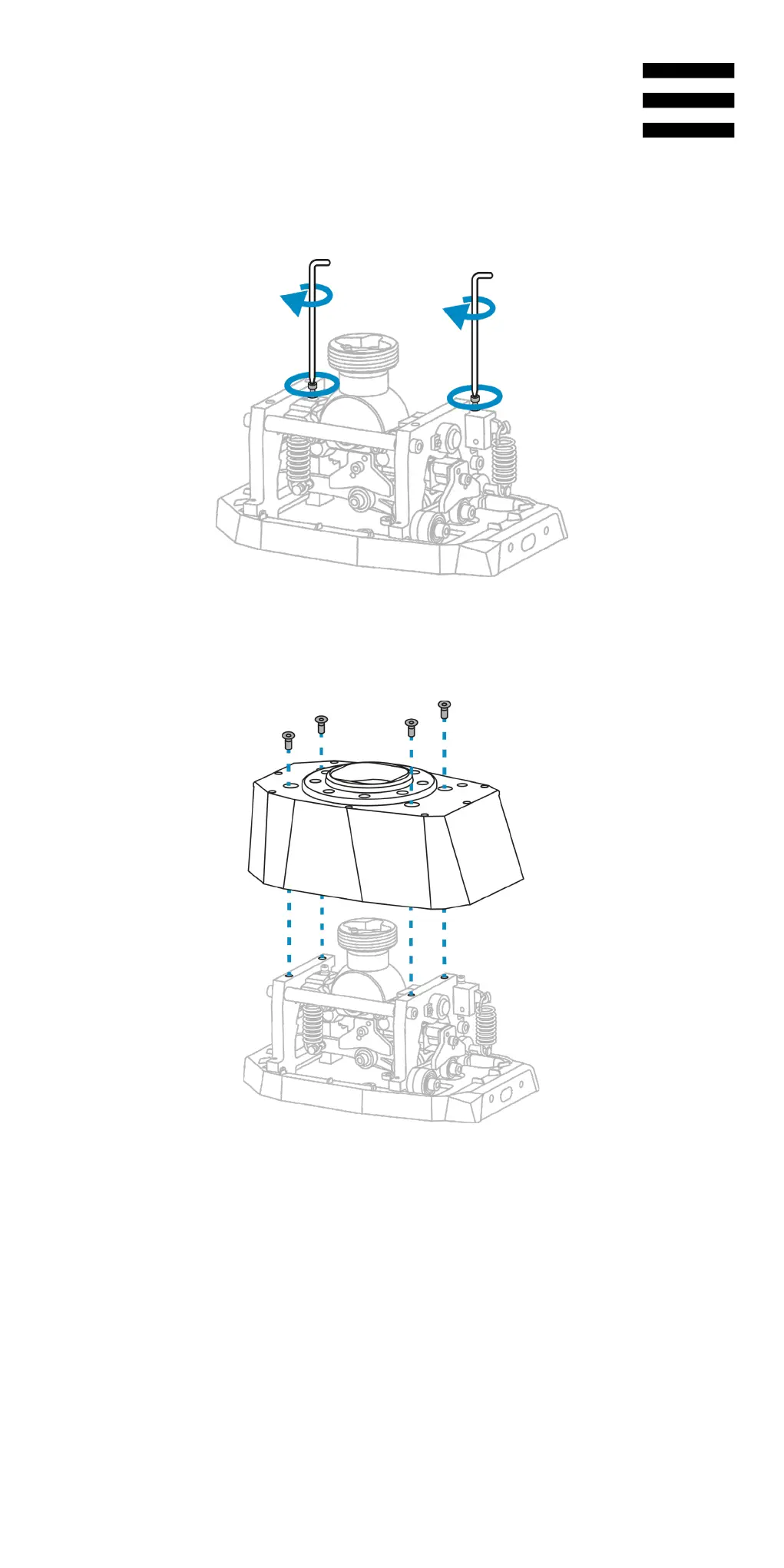4. Utáhněte (bez použití síly) dva šrouby, které