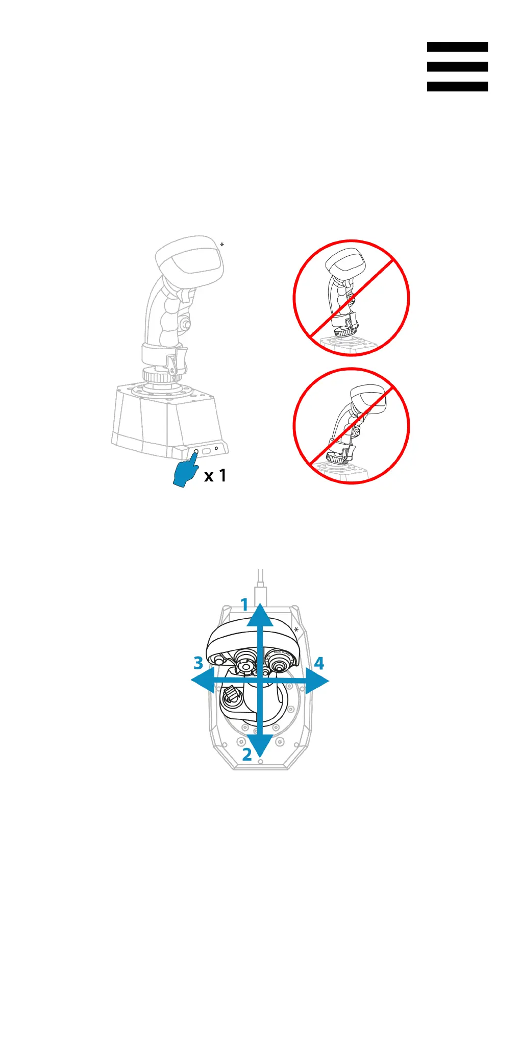 4. Without forcing, move the flight stick grip to reach