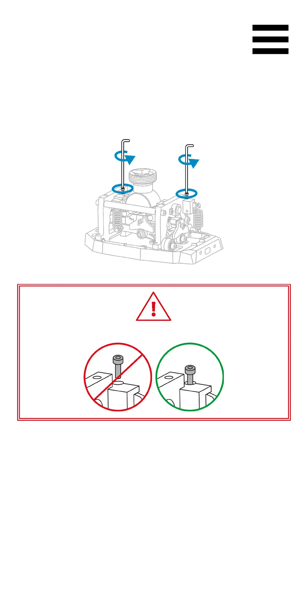 Varo, ettet avaa kahta jousia tukevaa ruuvia täysin.