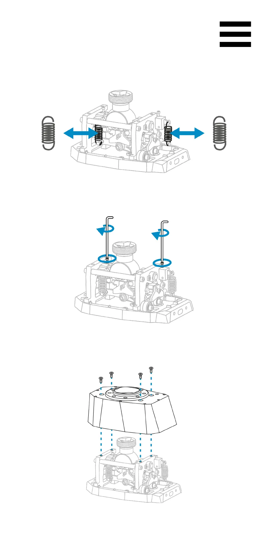 3. スプリングを支える 2 本のねじを締めます (締めす