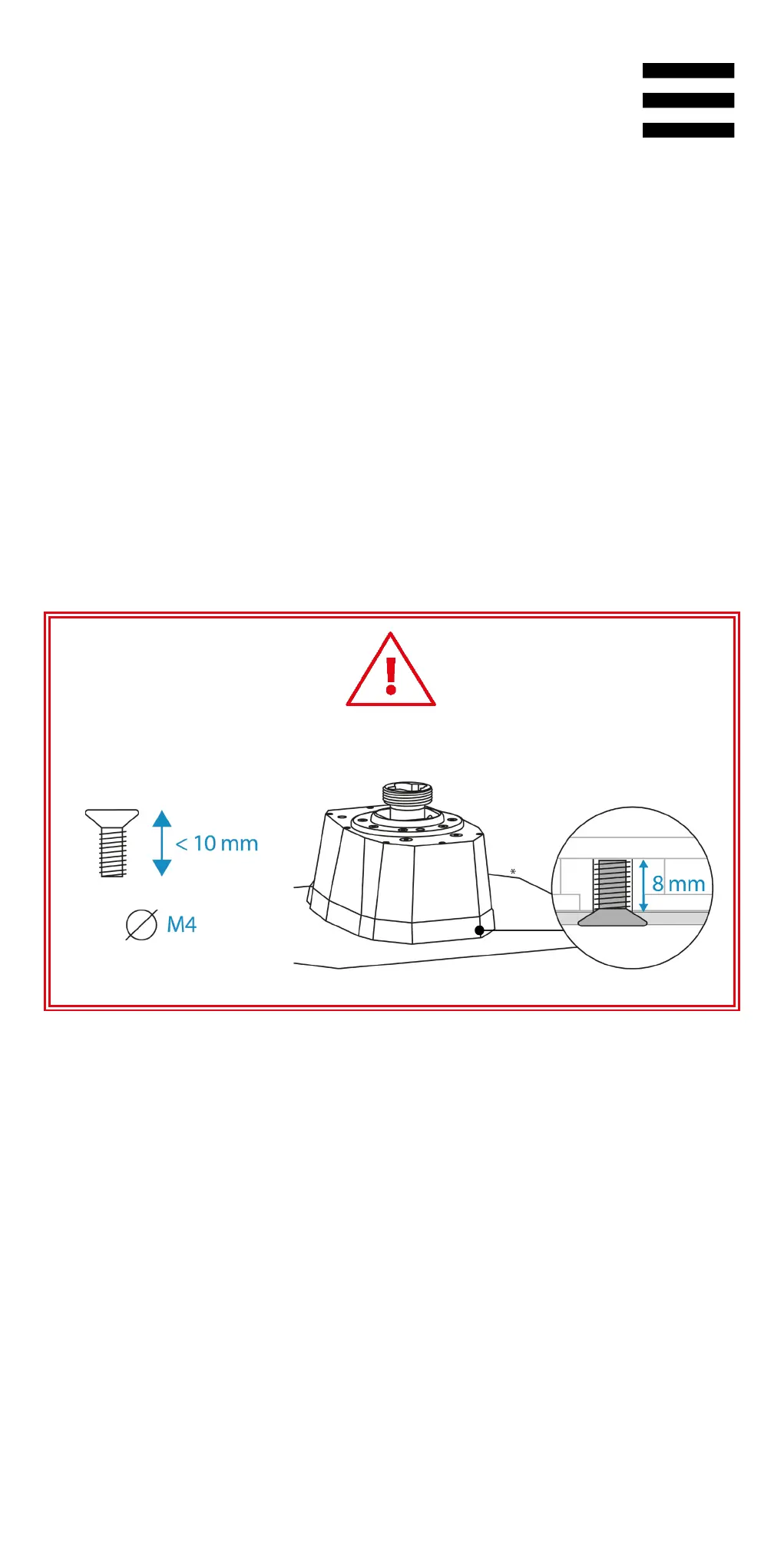 10 mm M4 螺丝(不随附),以免损坏底座。螺丝伸