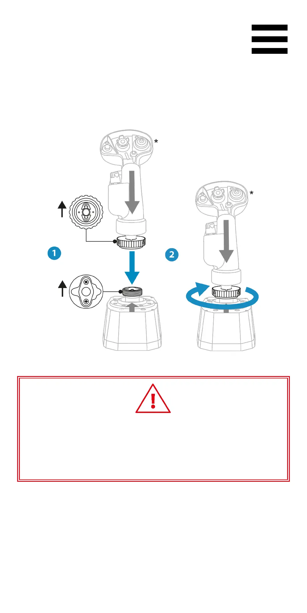 1. 按照下图所示,将飞行摇杆把手置于 AVA 底座上