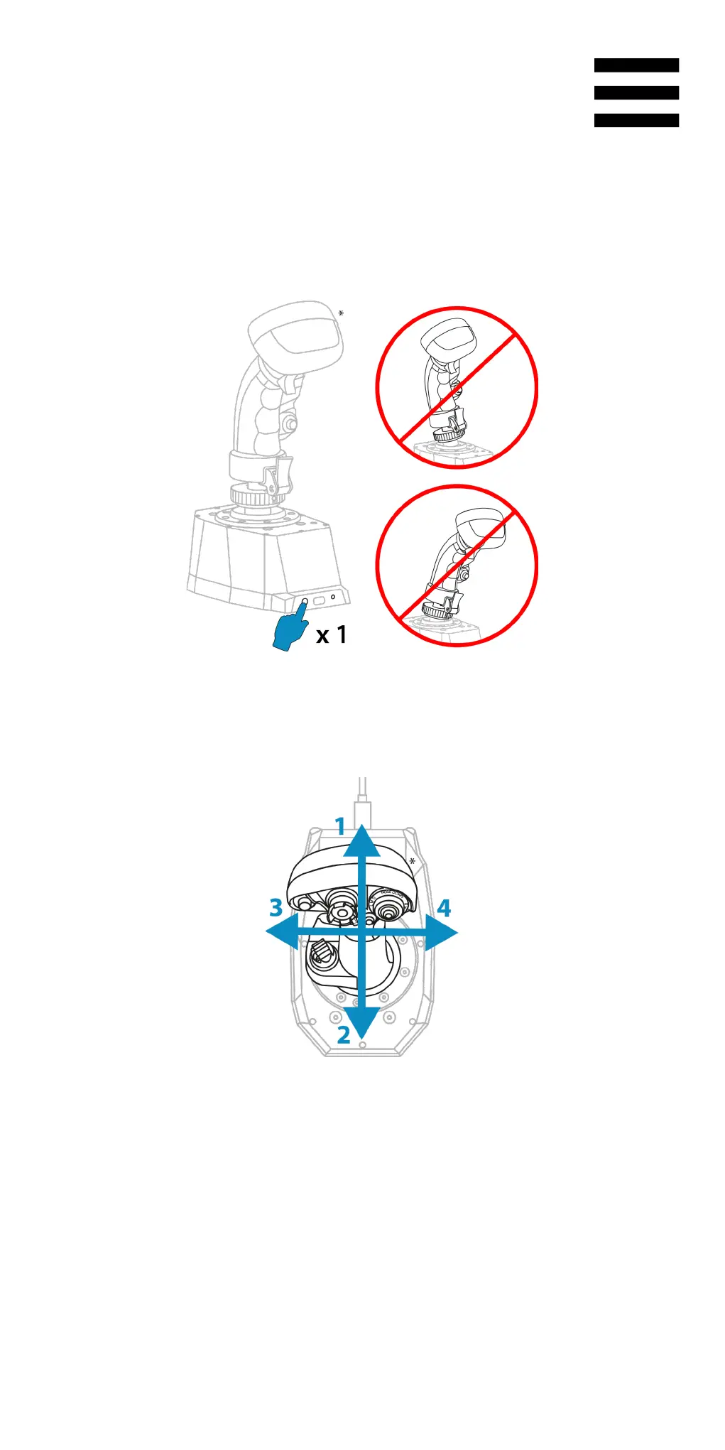 按鈕,以驗證飛行搖桿把手的中心位置。LED