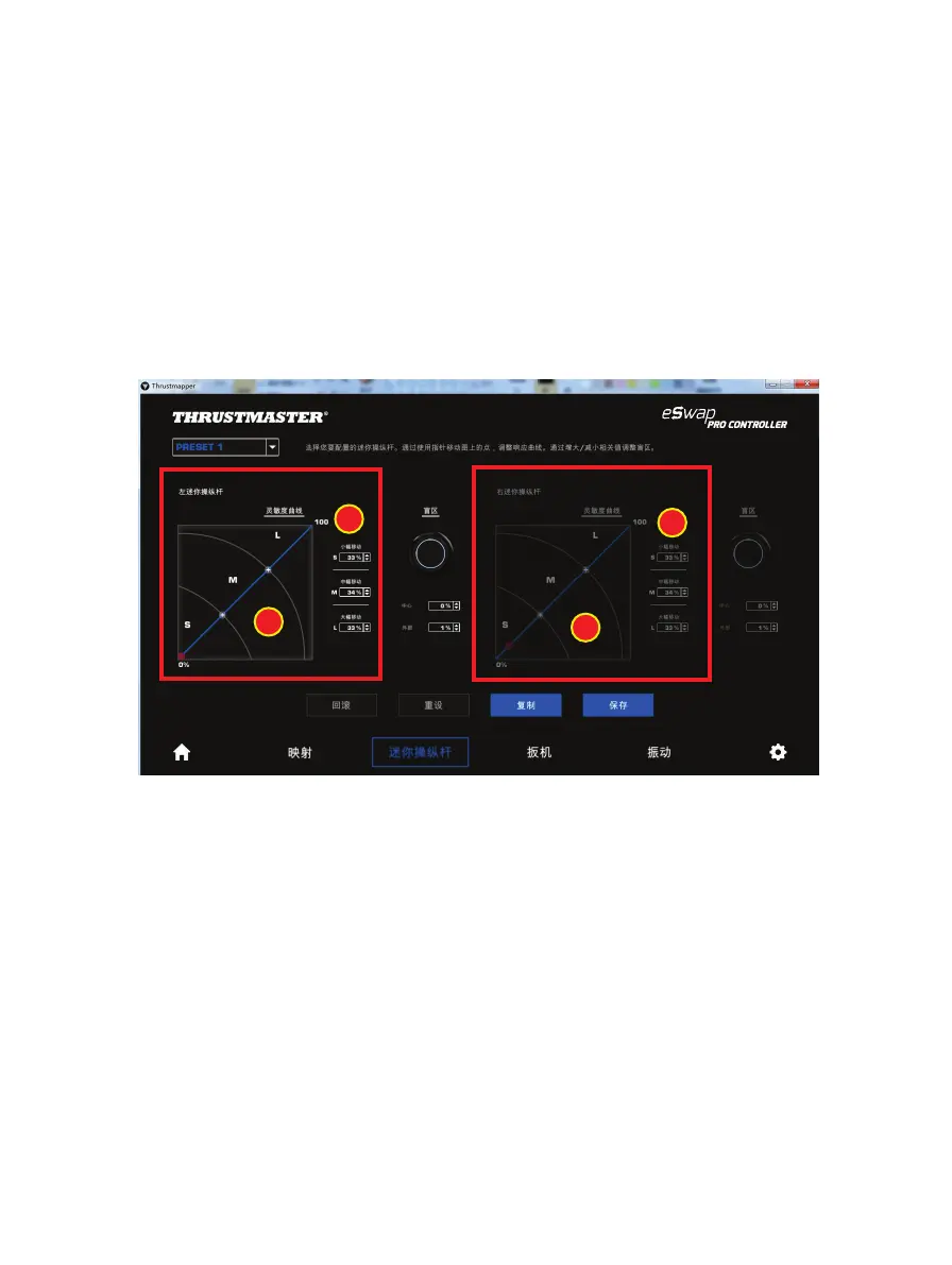 例如,如果您增大 S 区域,您在迷你操纵杆中心附近的动作将更精准。