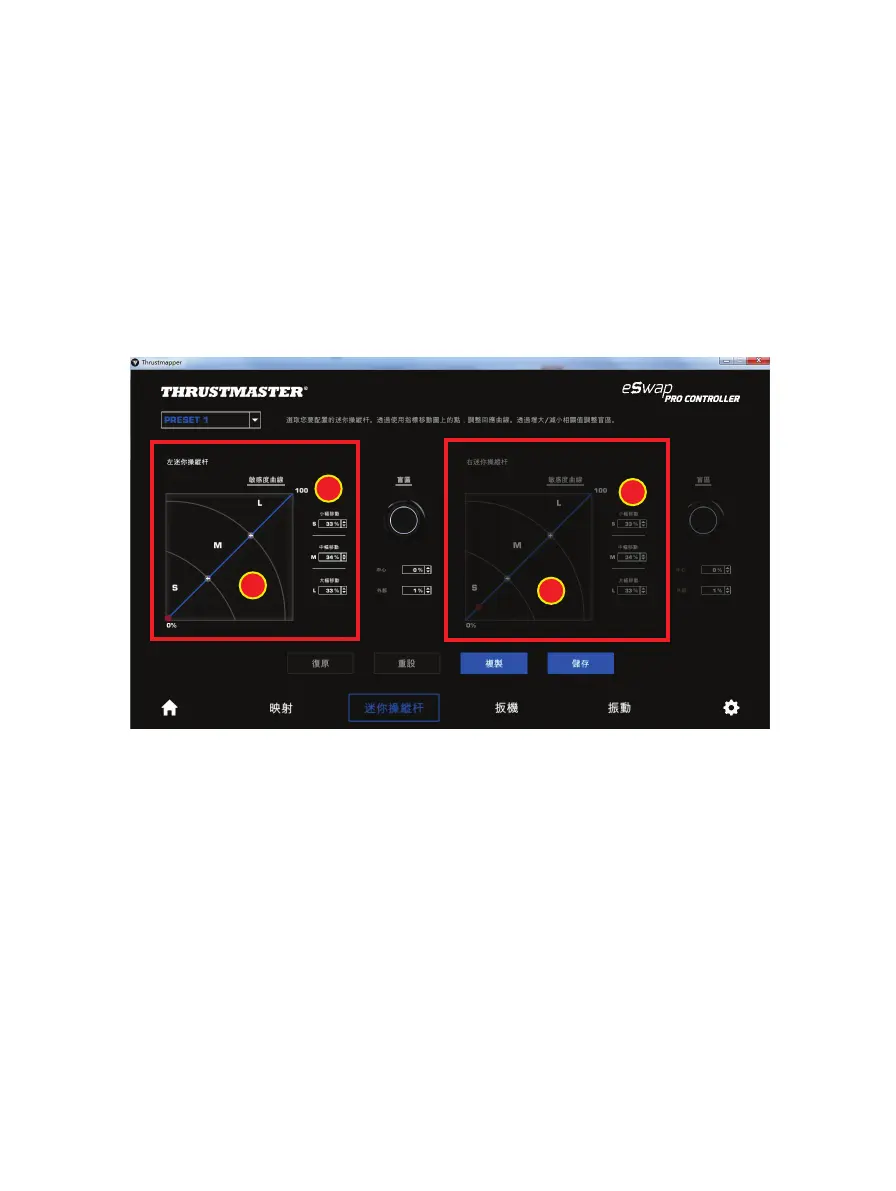 要修改迷你操縱杆的敏感度曲線,您可以: