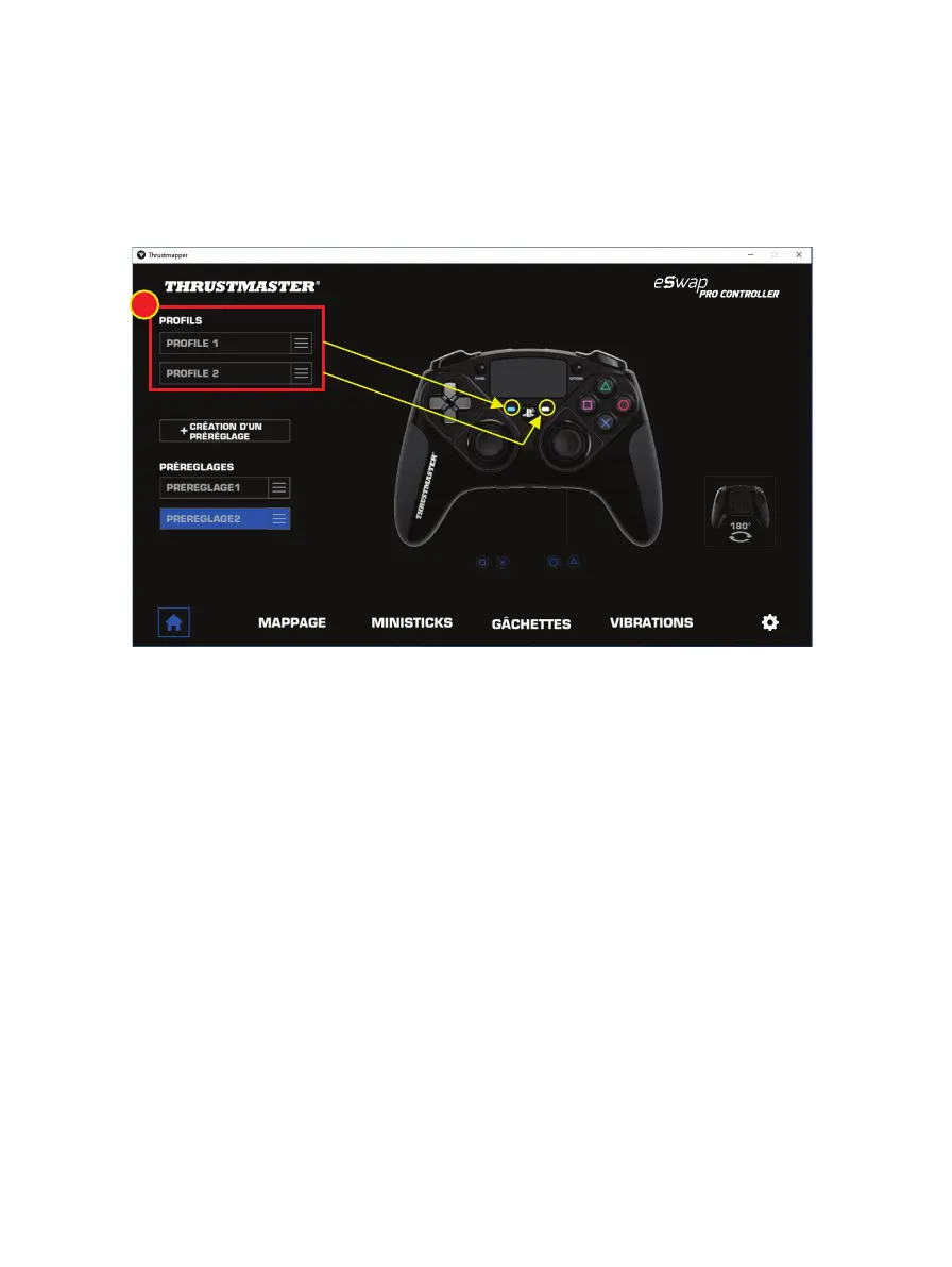 La manette est fournie avec deux profils chargés par défaut (1). Chaque profil correspond à un