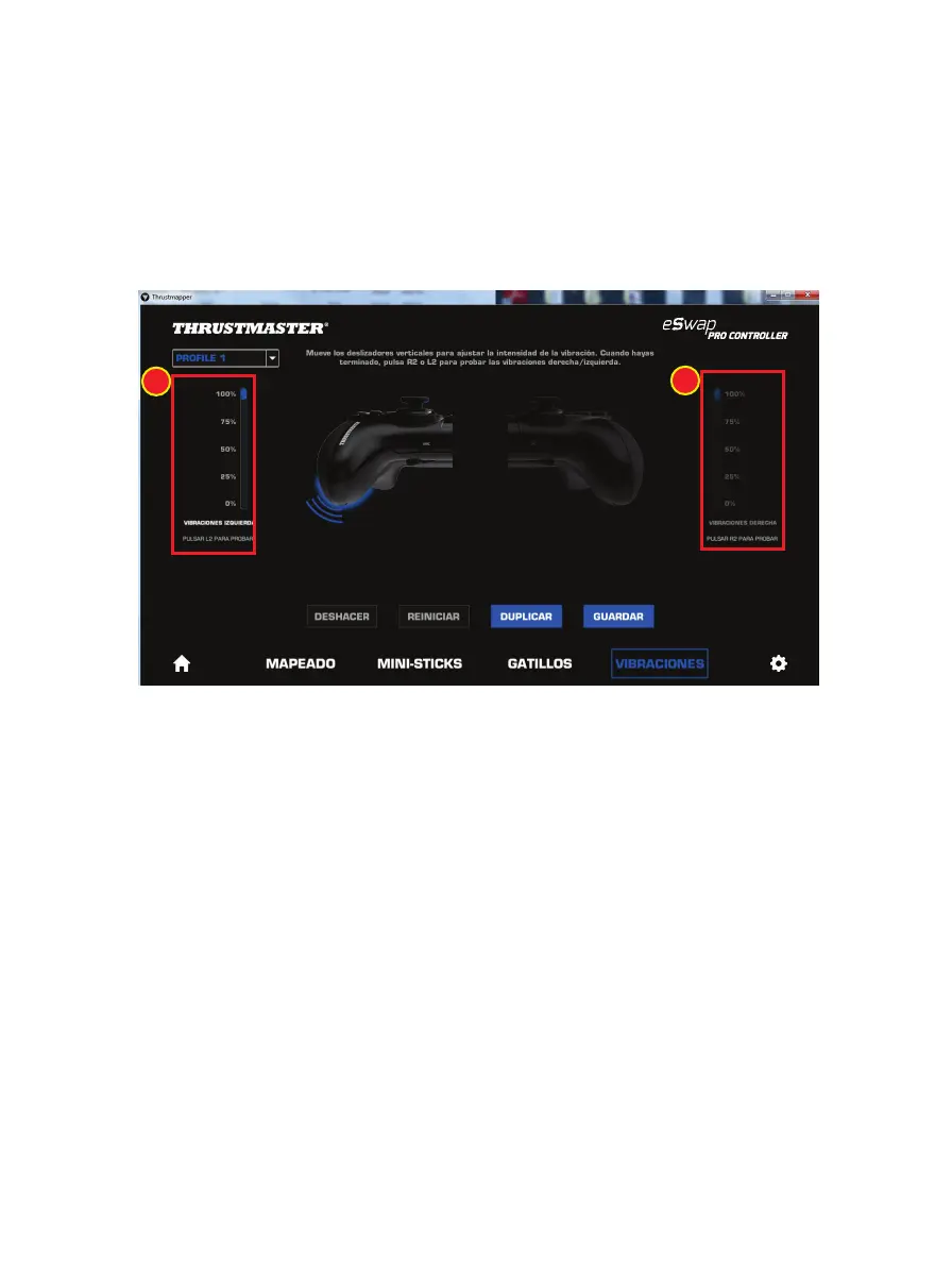 - Mueve los deslizadores para definir la intensidad máxima de las vibraciones izquierda y