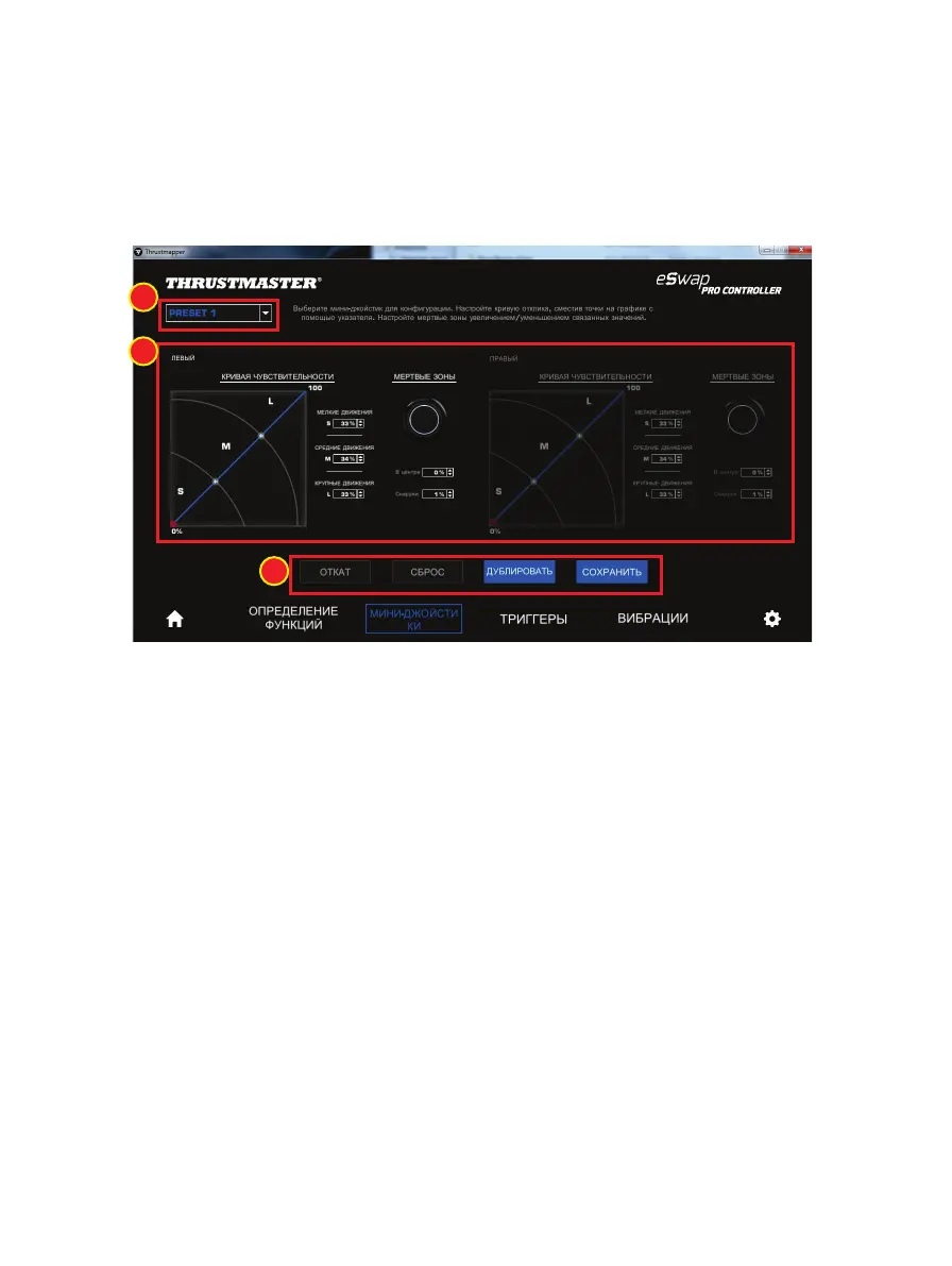 Настройка кривой чувствительности и мертвых зон для левого и правого мини-джойстиков