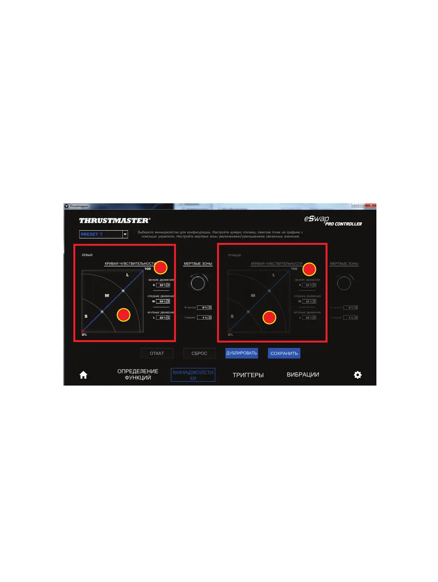 Для изменения кривой чувствительности мини-джойстиков можно выполнить