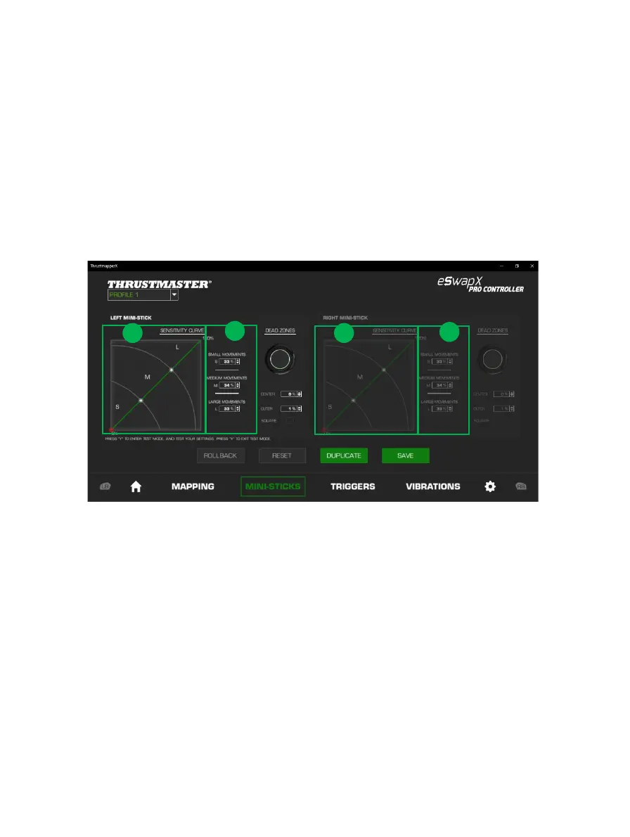 For example, if you increase the S zone, your movements near the center of the mini-stick will be
