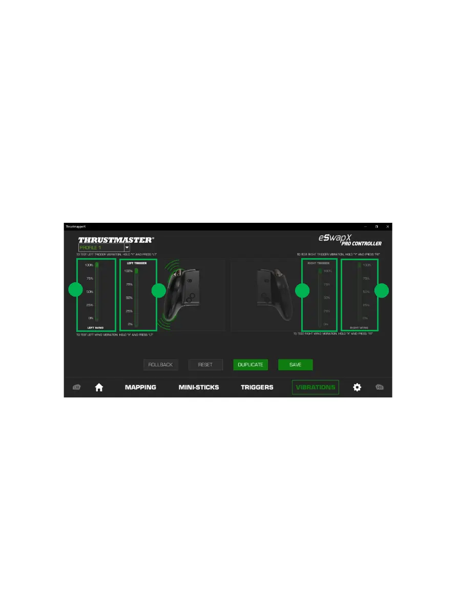 - Move the sliders to set the maximum intensity of both the right and left handle vibrations (1).