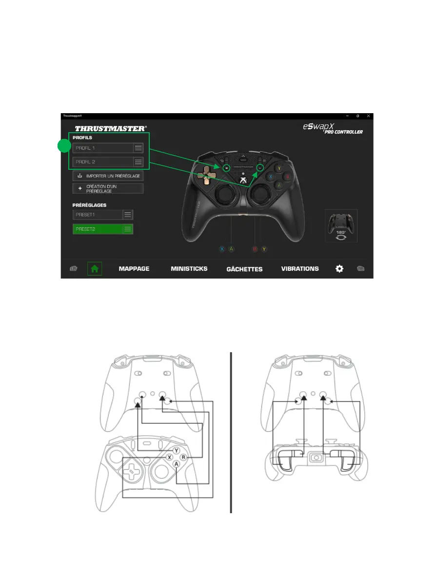 La manette est fournie avec deux profils chargés par défaut (1). Chaque profil correspond à un