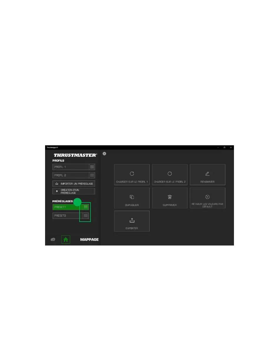 Cliquez à droite du préréglage (1) souhaité pour :